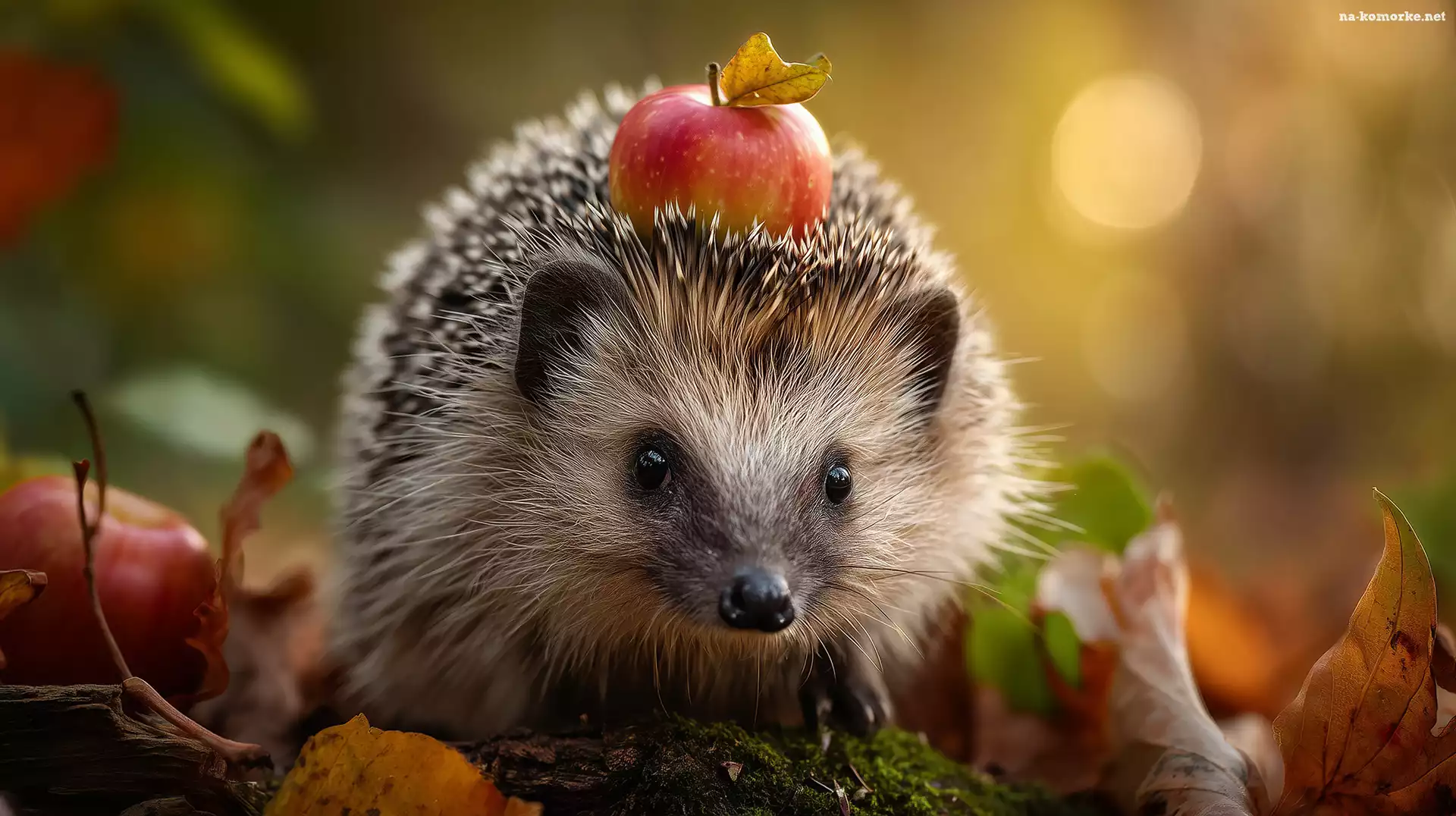 Jeż, Suche, Liście, Jabłko, GrafIka AI na Komórkę