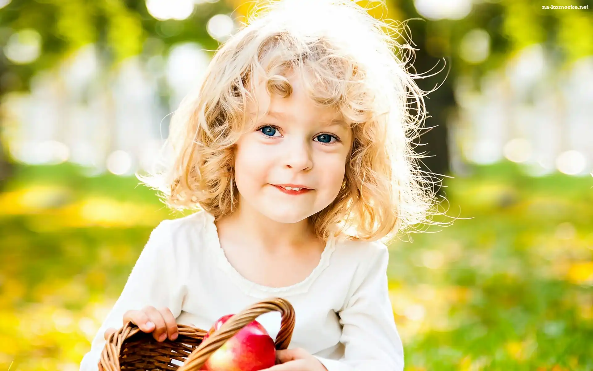 Jabłko, Dziewczynka, Uśmiechnięta, Rozmycie, Koszyk, Ogród na Komórkę