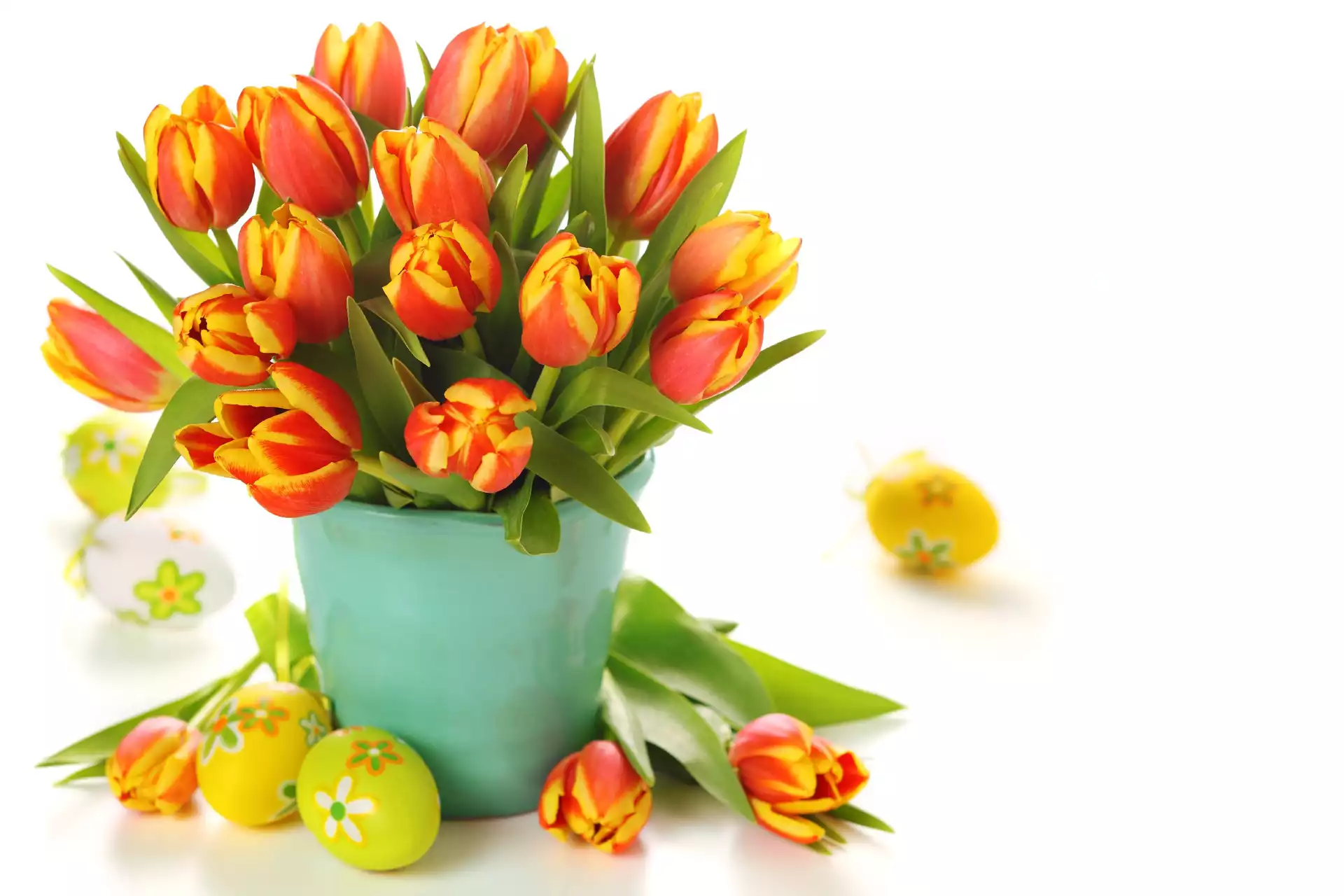 Wielkanoc, Tulipany, Jajka na Komórkę