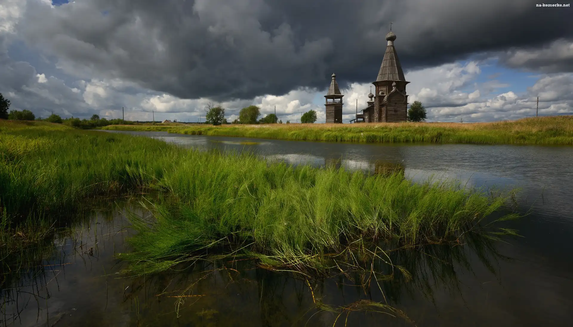 Cerkiew Świętego Jana Chryzostoma, Obwód archangielski, Rosja, Rzeka Onega, Trawa, Drzewa, Kiprovo na Komórkę |