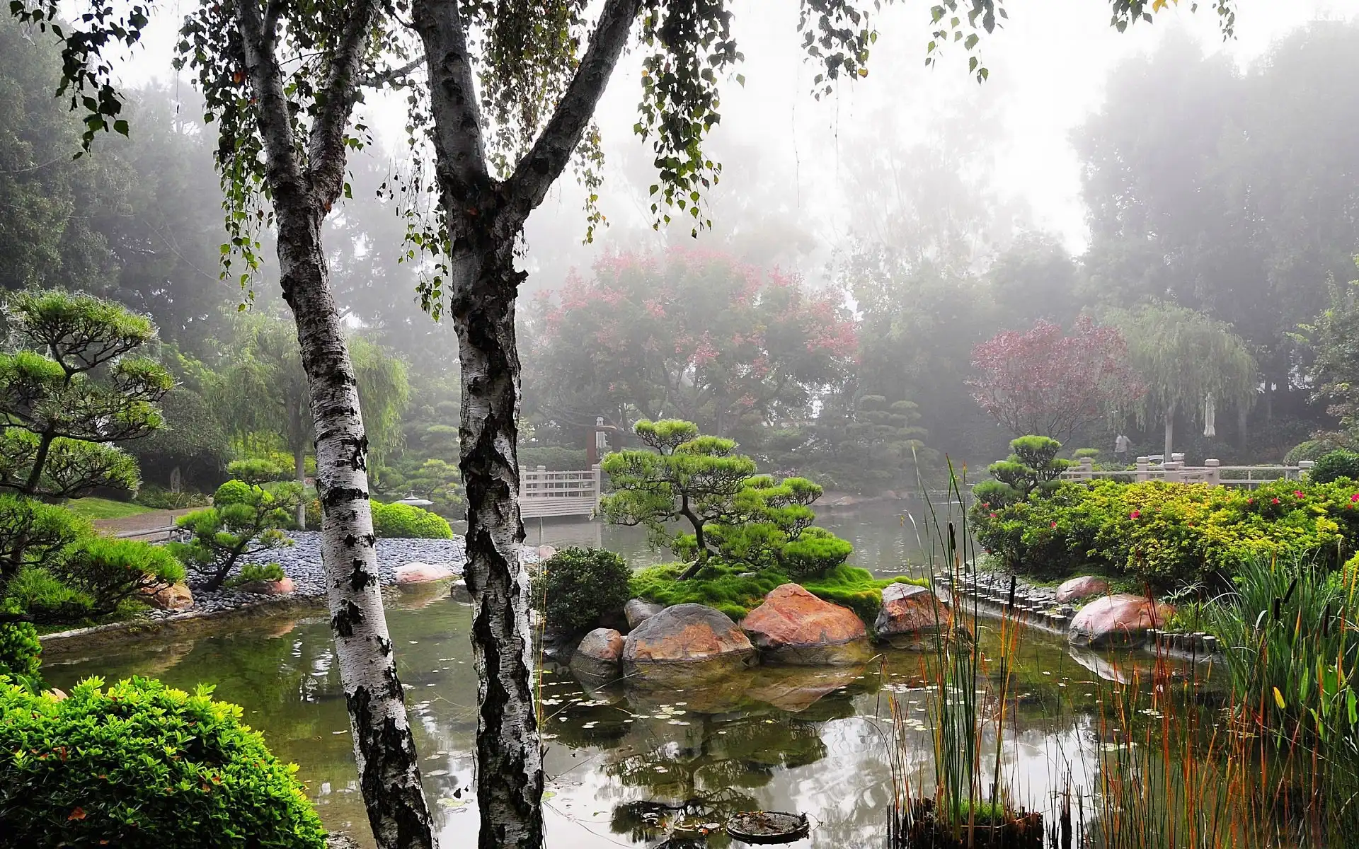 Japoński, Mgła, Ogród, Poranek na Komórkę