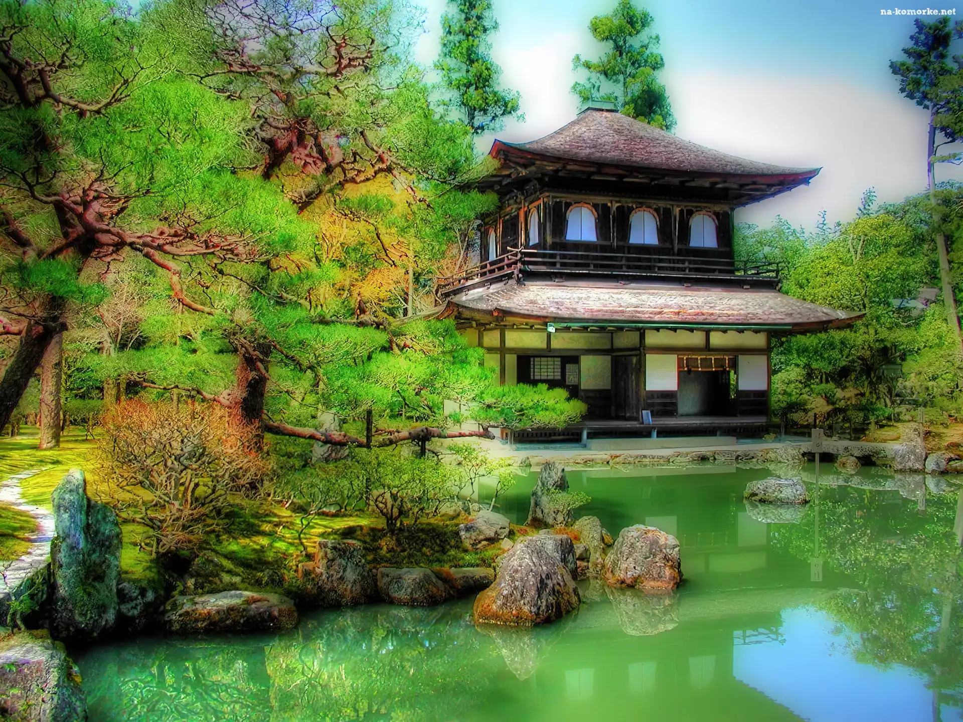 Japoński, Staw, Ogród, Domek na Komórkę