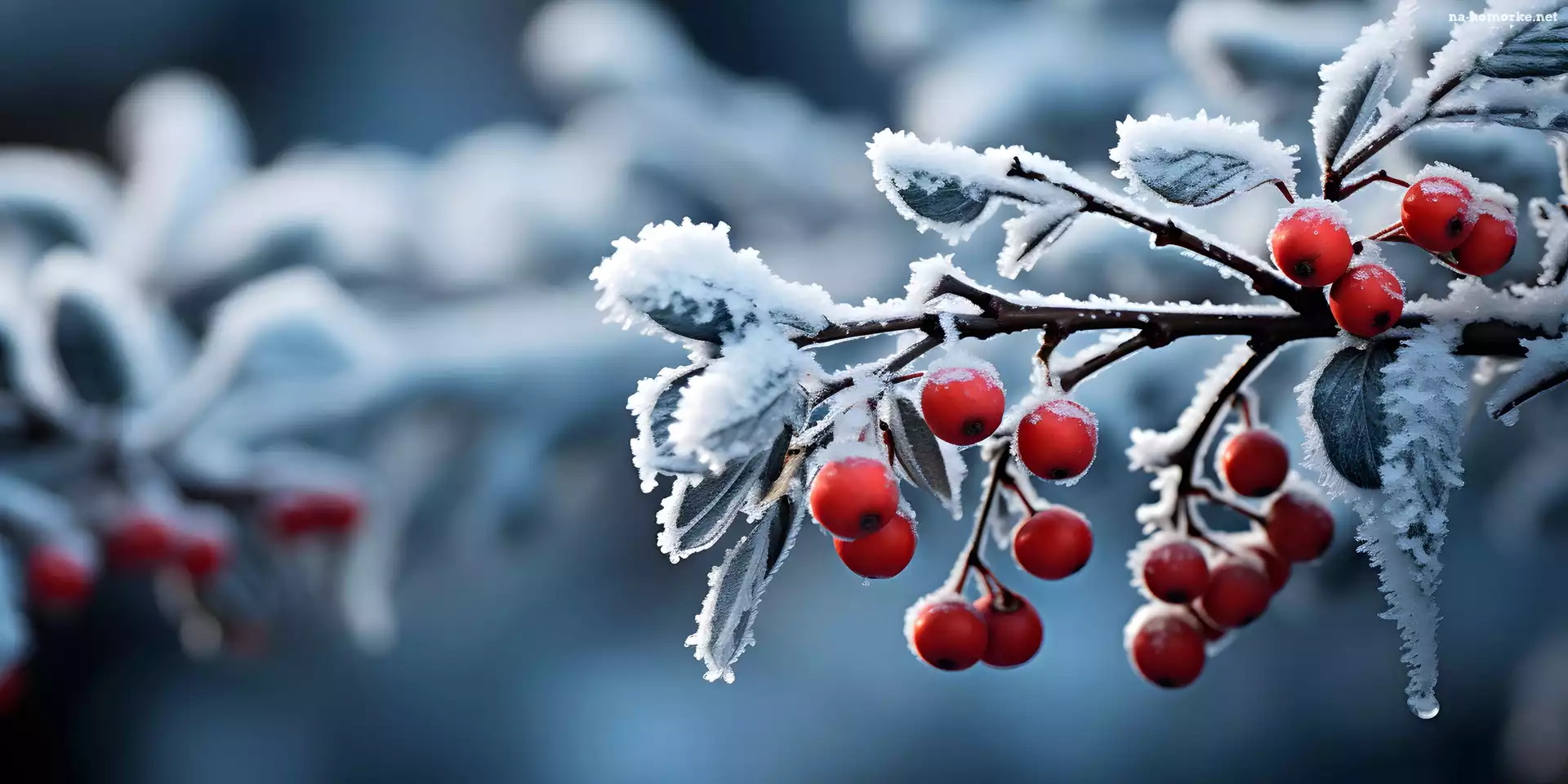 Gałązka, Jarzębina, Szron, Owoce, Grafika na Komórkę