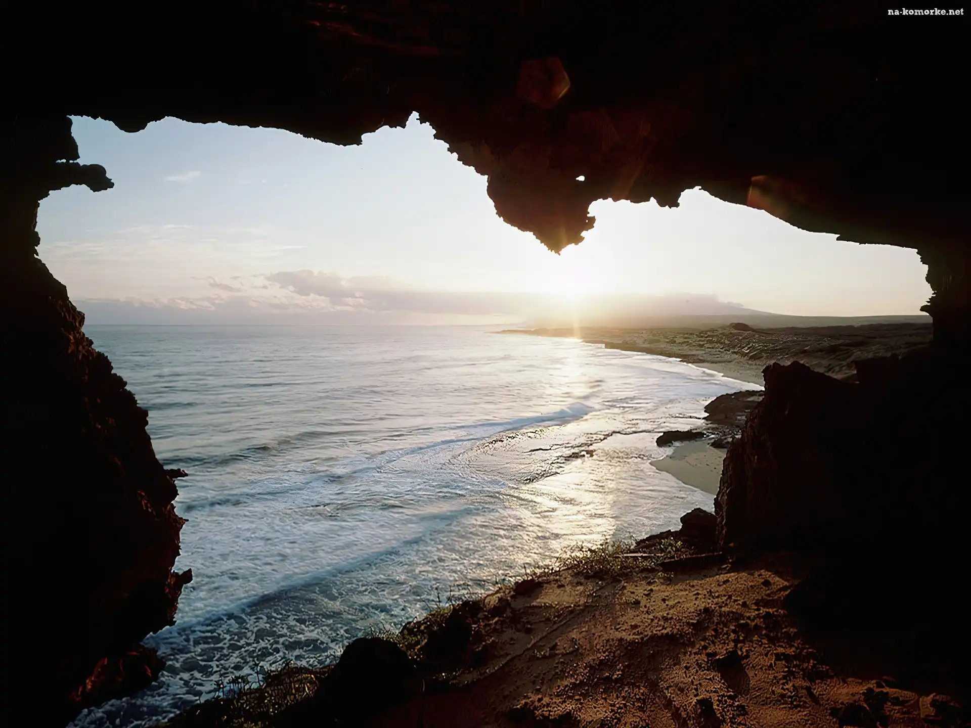 Jaskinia, Słońca, Morze, Promienie na Komórkę