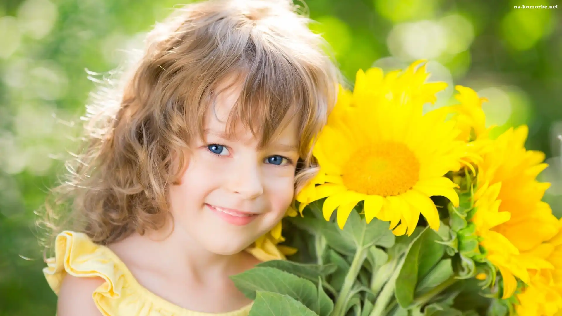 Jasne, Niebieskie, Dziewczynka, Słoneczniki, Oczy, Włosy na Komórkę