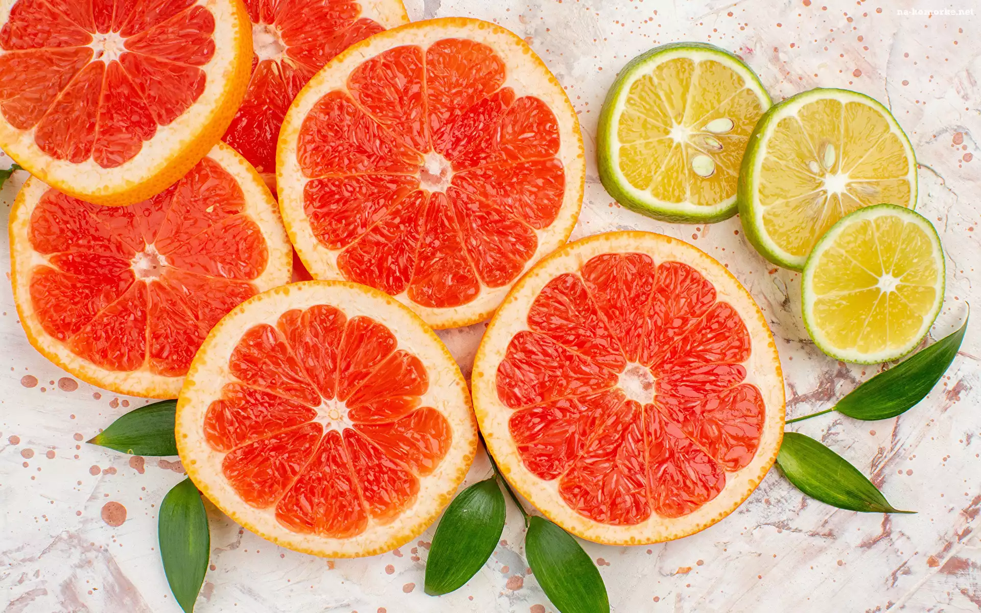 Liście, Owoce, Plastry, Jasne tło, Limonka, Grejpfrut na Komórkę