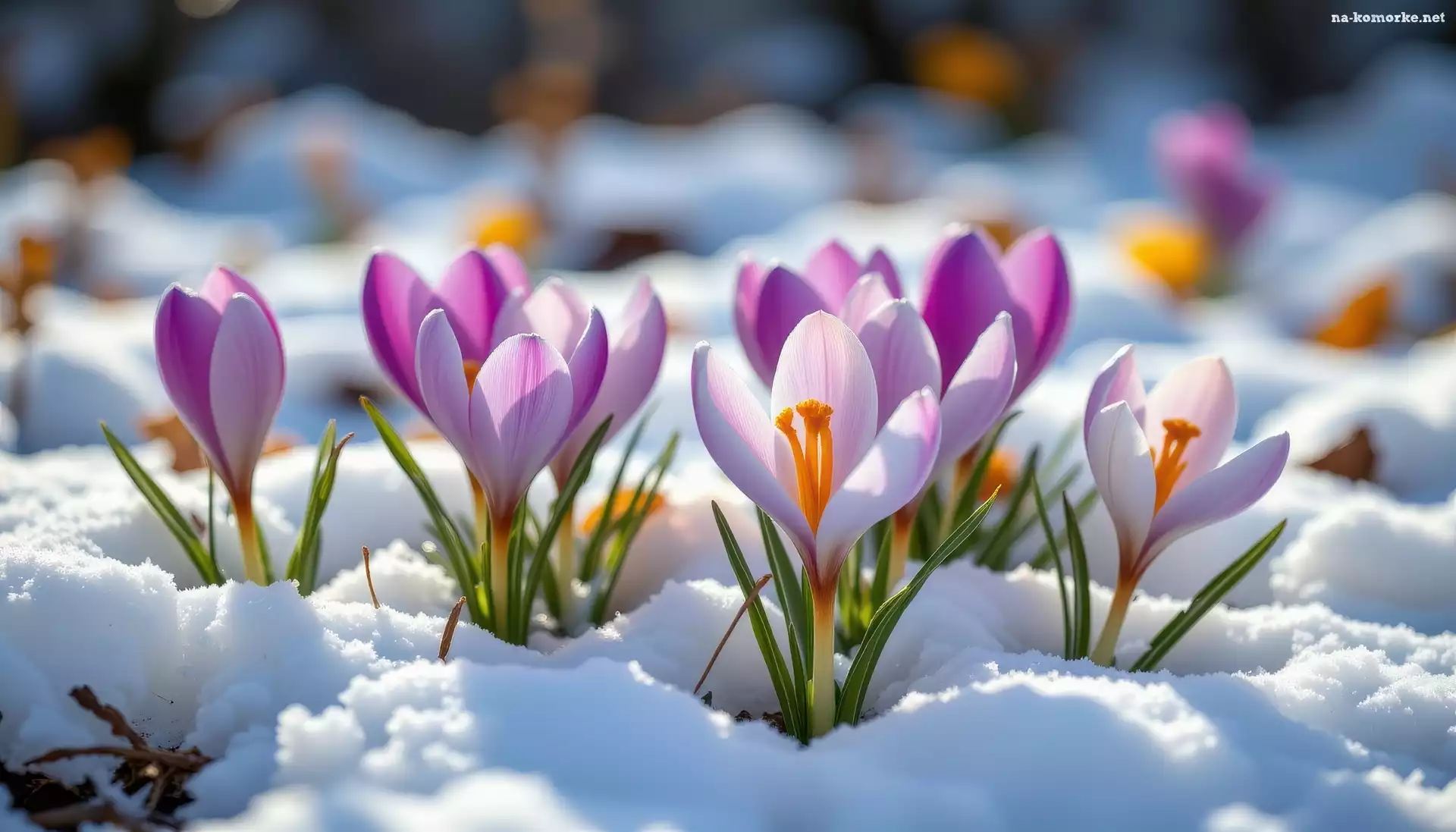 Jasnofioletowe, Śnieg, Krokusy na Komórkę