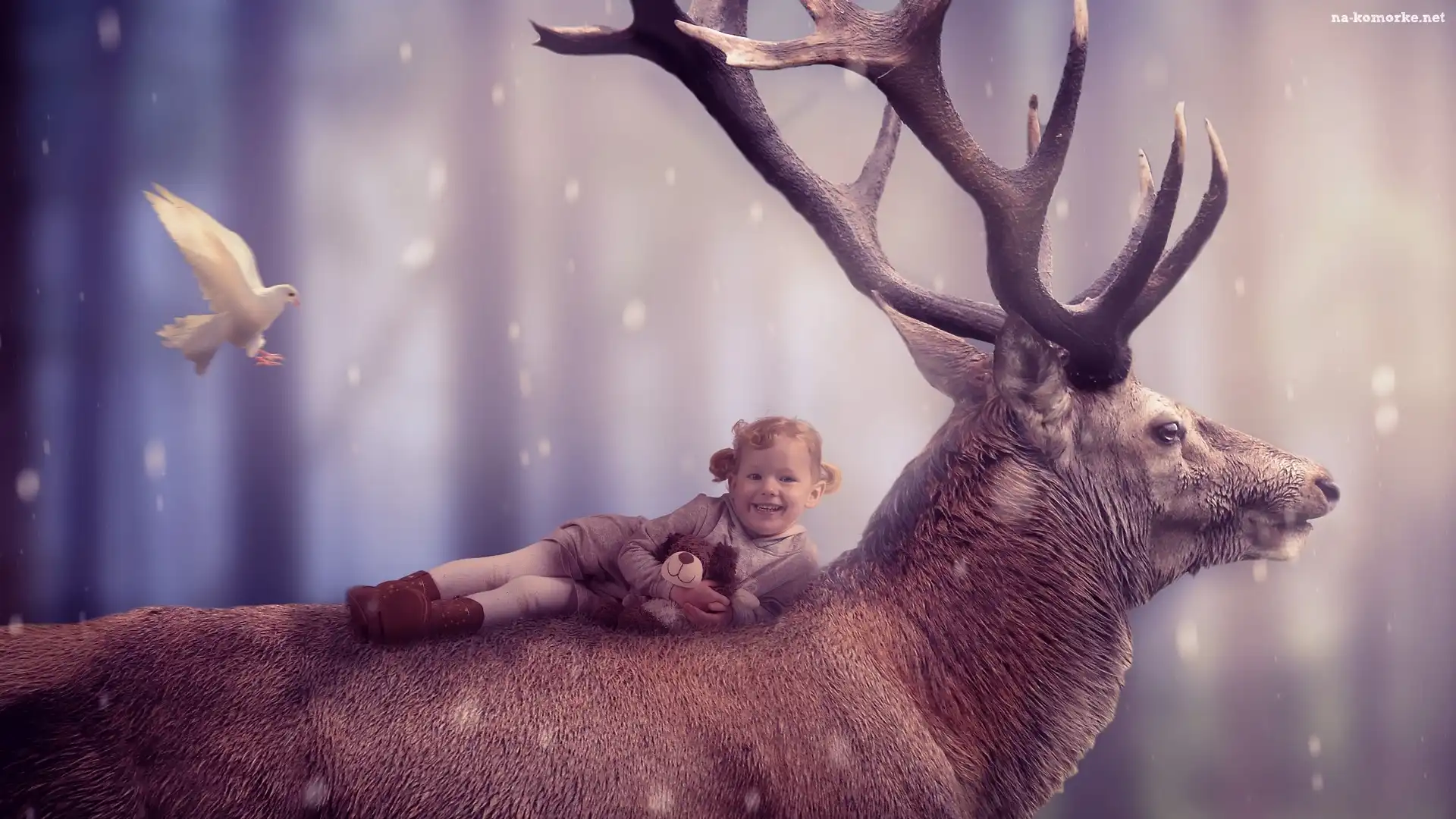 Dziewczynka, Jeleń, Gołąbek na Komórkę