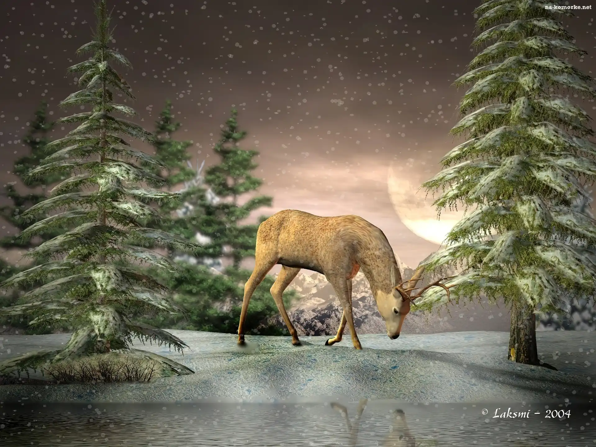 Jeleń, 3D, Śnieg, Las na Komórkę