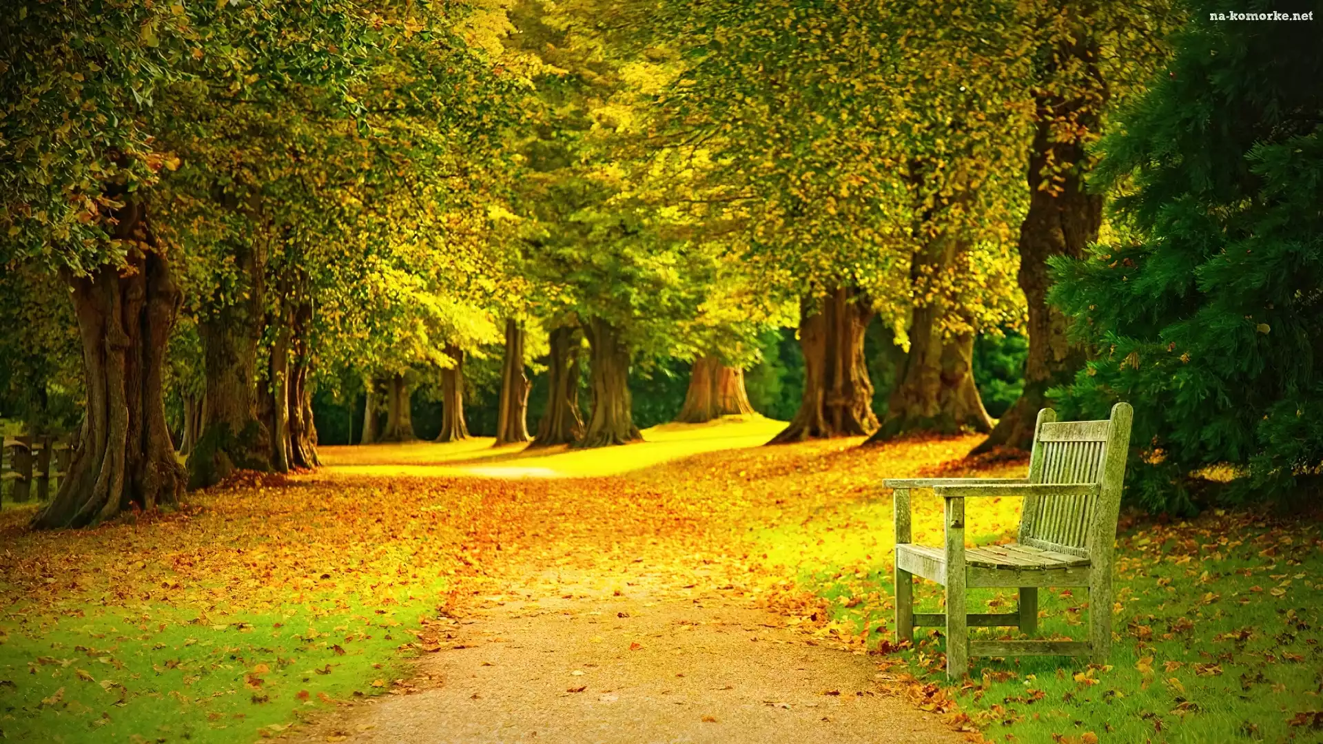 Jesień, Park, Ławka, Drzewa na Komórkę
