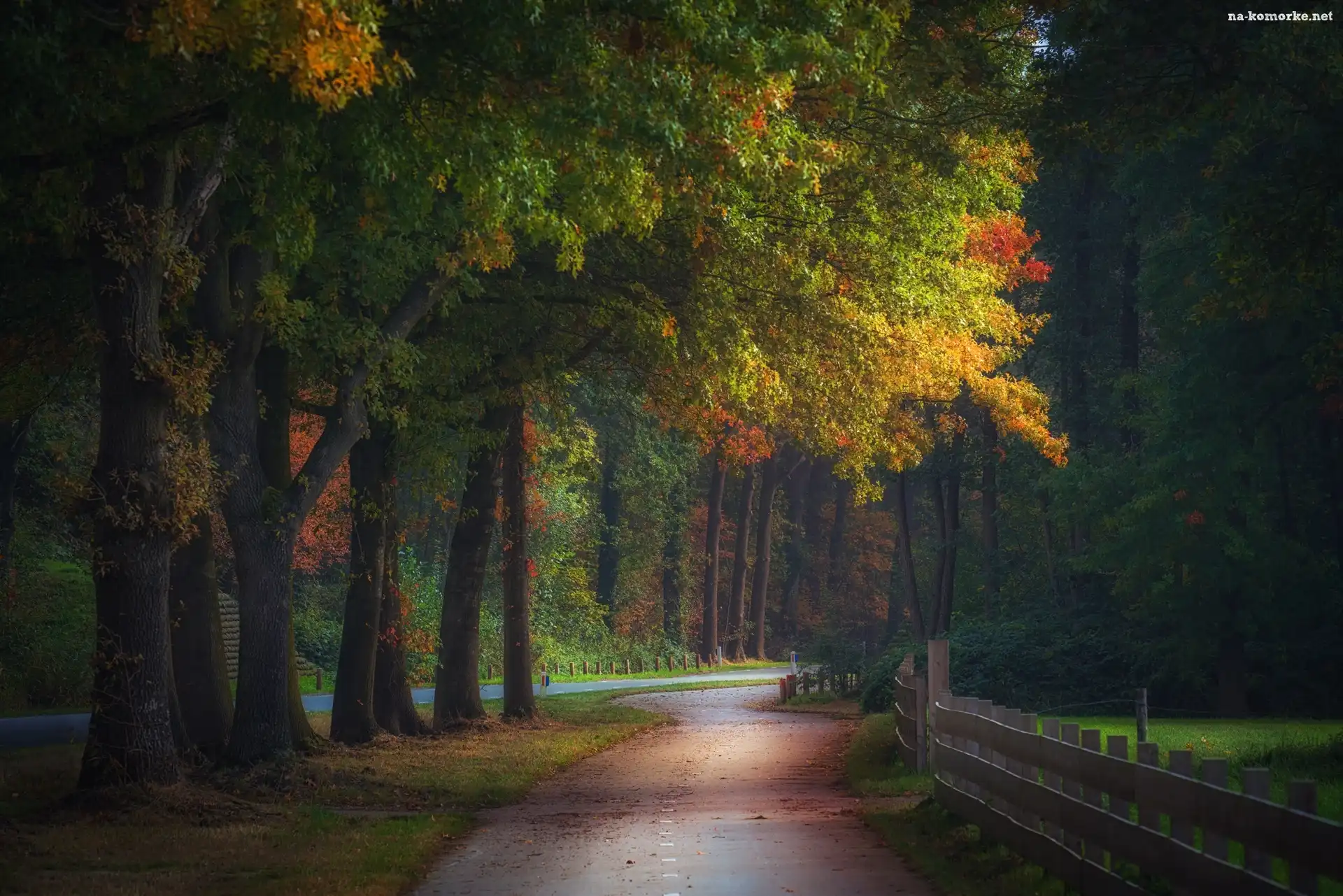 Jesień, Ogrodzenie, Droga, Las na Komórkę