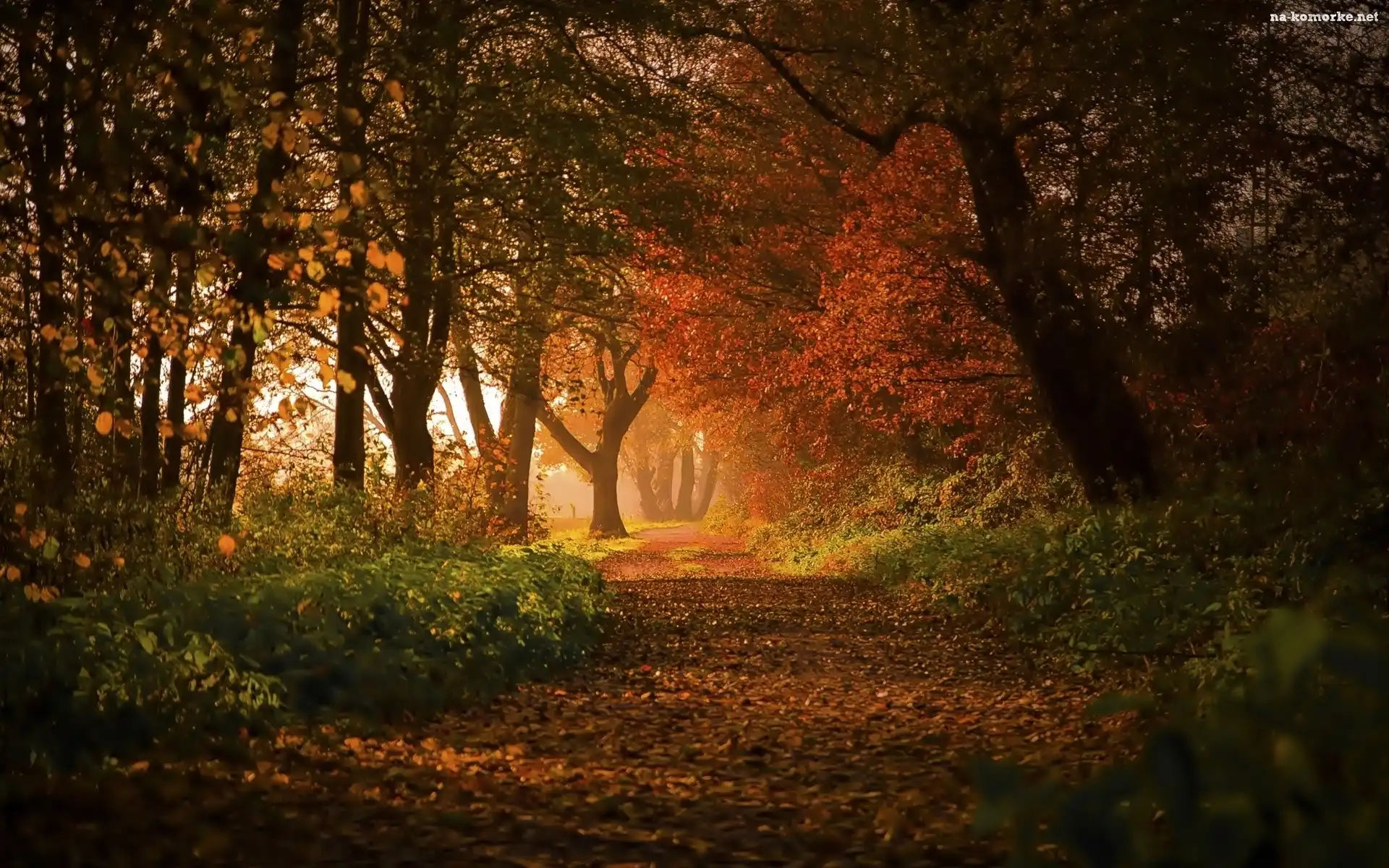 Jesień, Park, Aleja, Drzewa, Liście na Komórkę