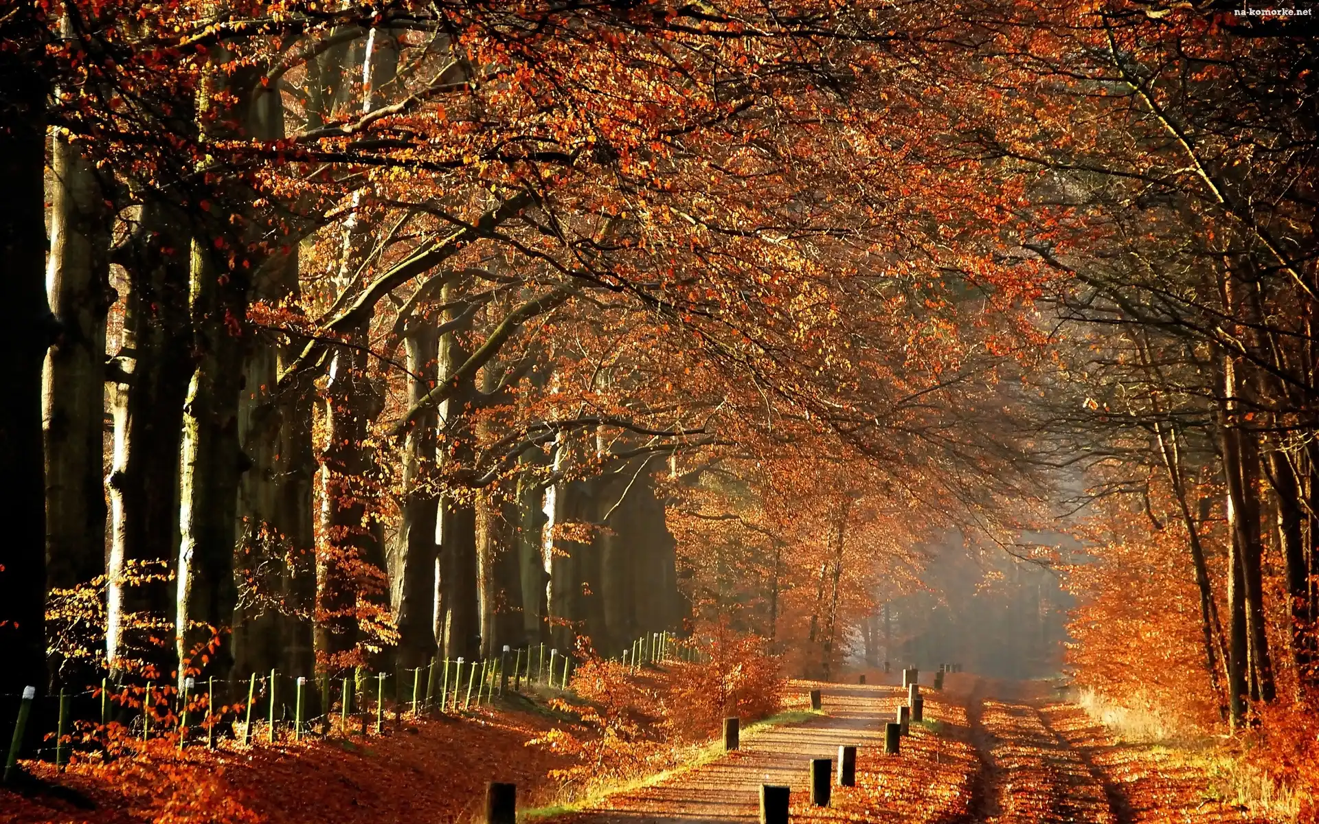 Jesień, Park, Droga, Drzewa, Mgła na Komórkę