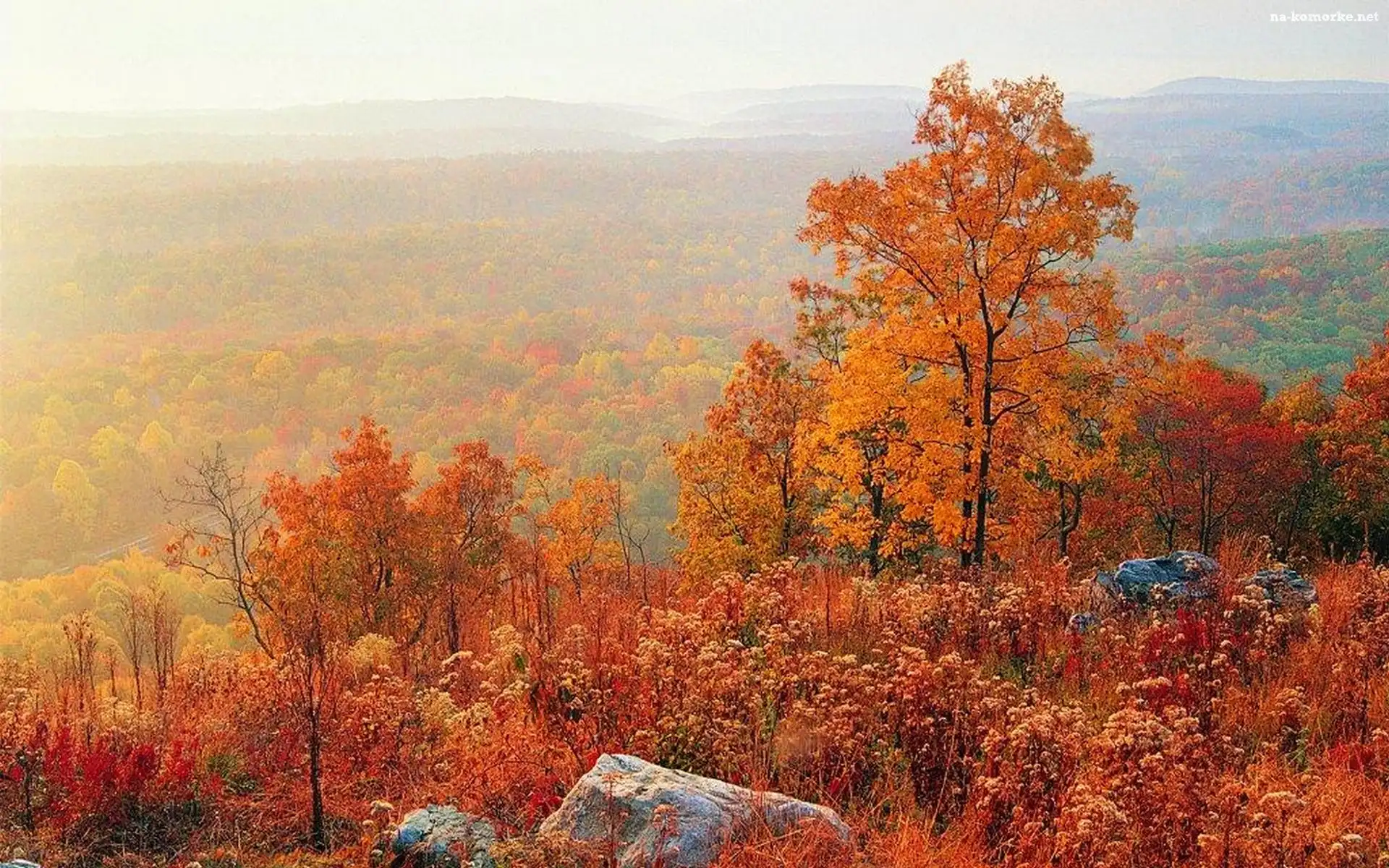 Jesień, Lasy, Kolorowe, Drzewa, Kamienie na Komórkę