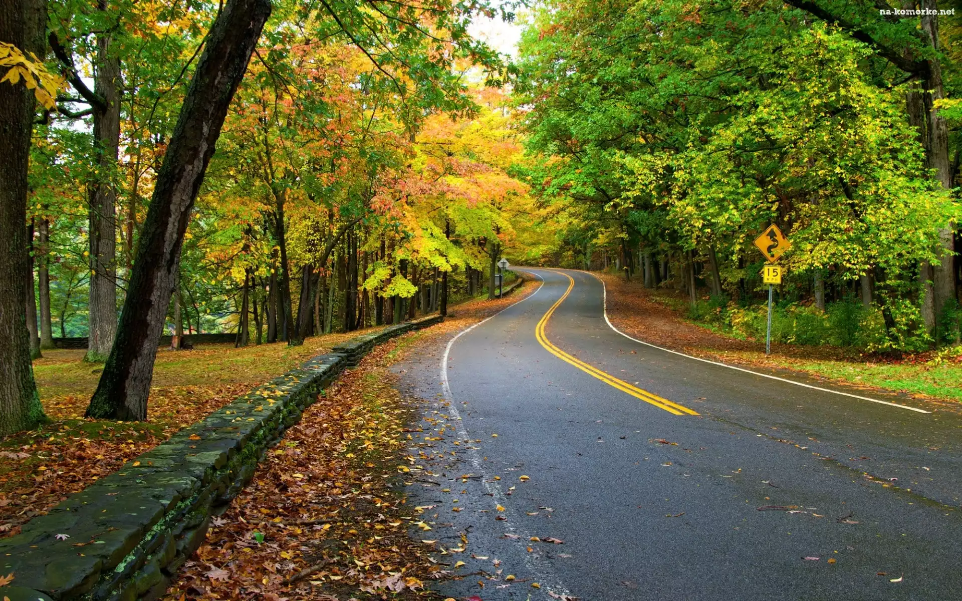 Jesień, Droga, Las, Drzewa, Liście na Komórkę