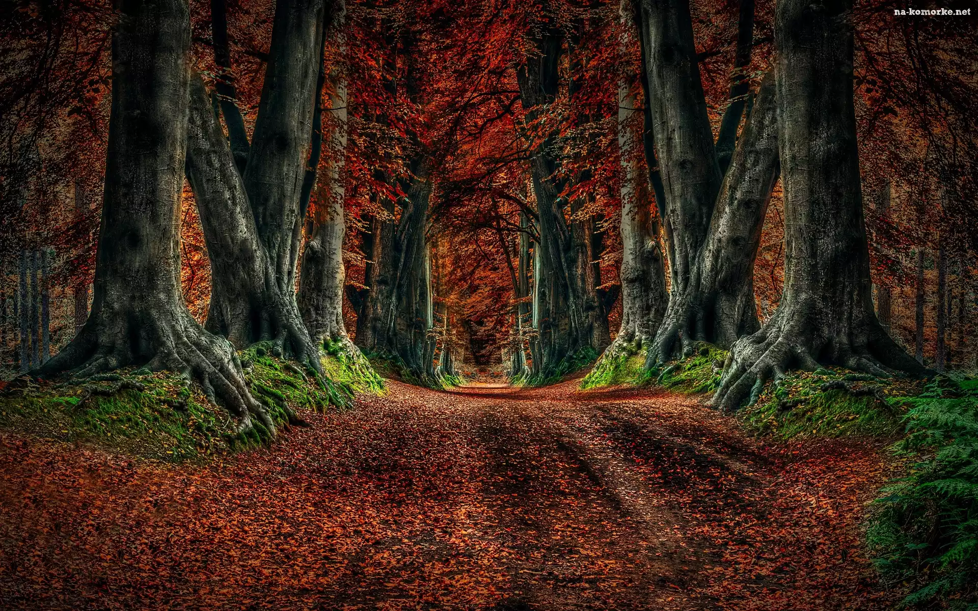 Jesień, Las, Drzewa, Droga na Komórkę