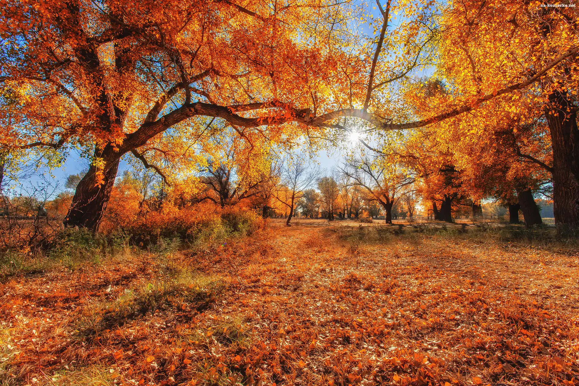 Jesień, Promienie słońca, Drzewa, Liście na Komórkę