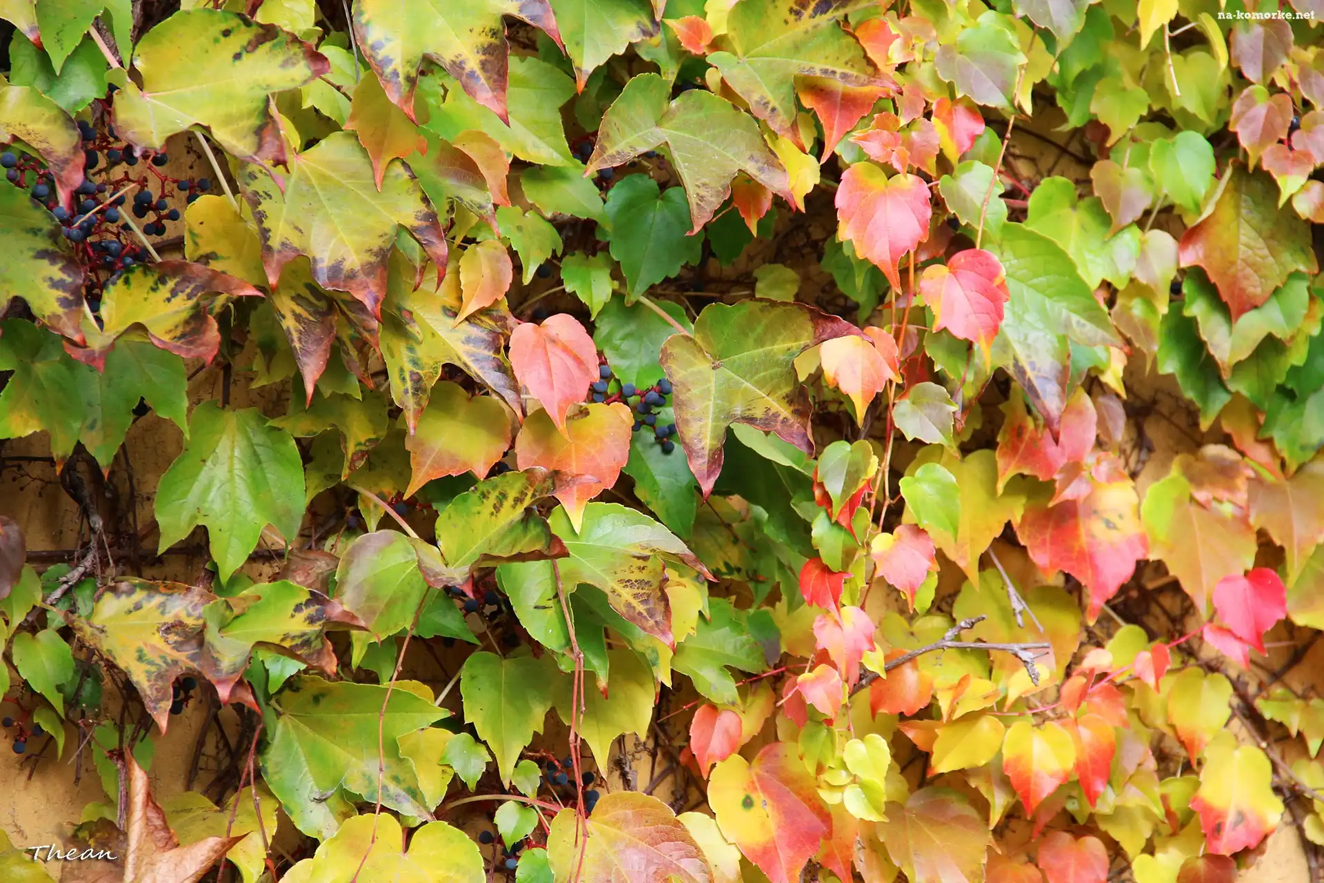 Jesień, Kolorowe, Liście, Dzikie, Wino na Komórkę