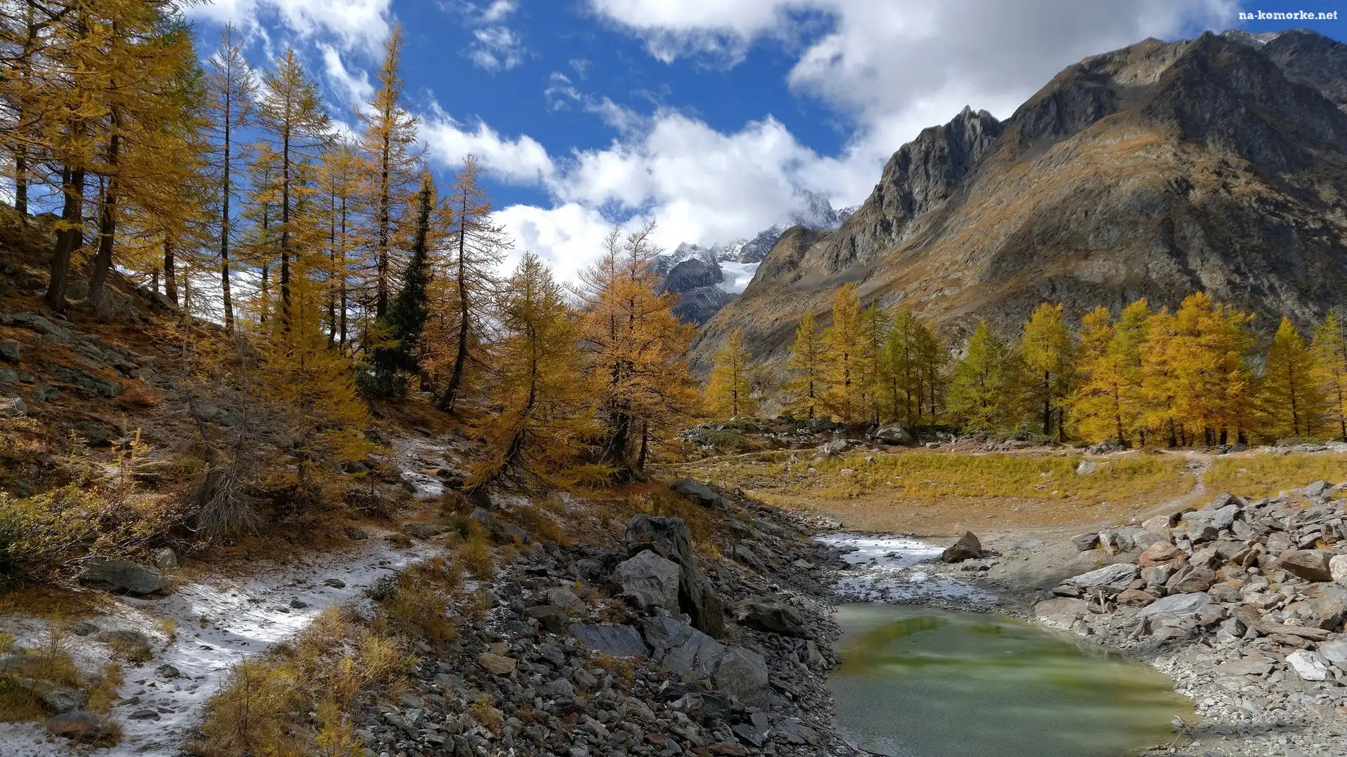 Jesień, Drzewa, Góry, Kamienie na Komórkę
