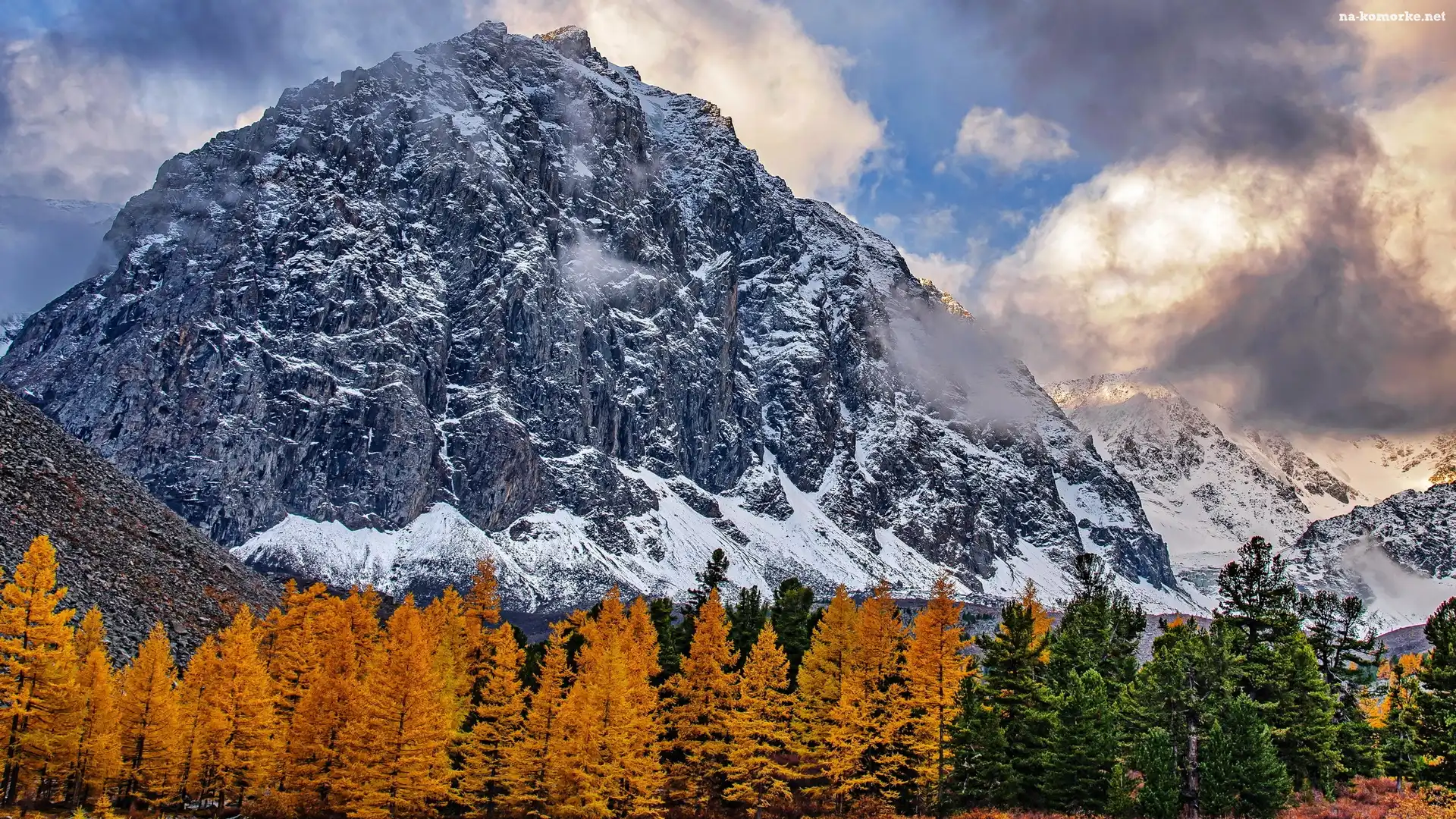 Jesień, Śnieg, Góry, Drzewa na Komórkę