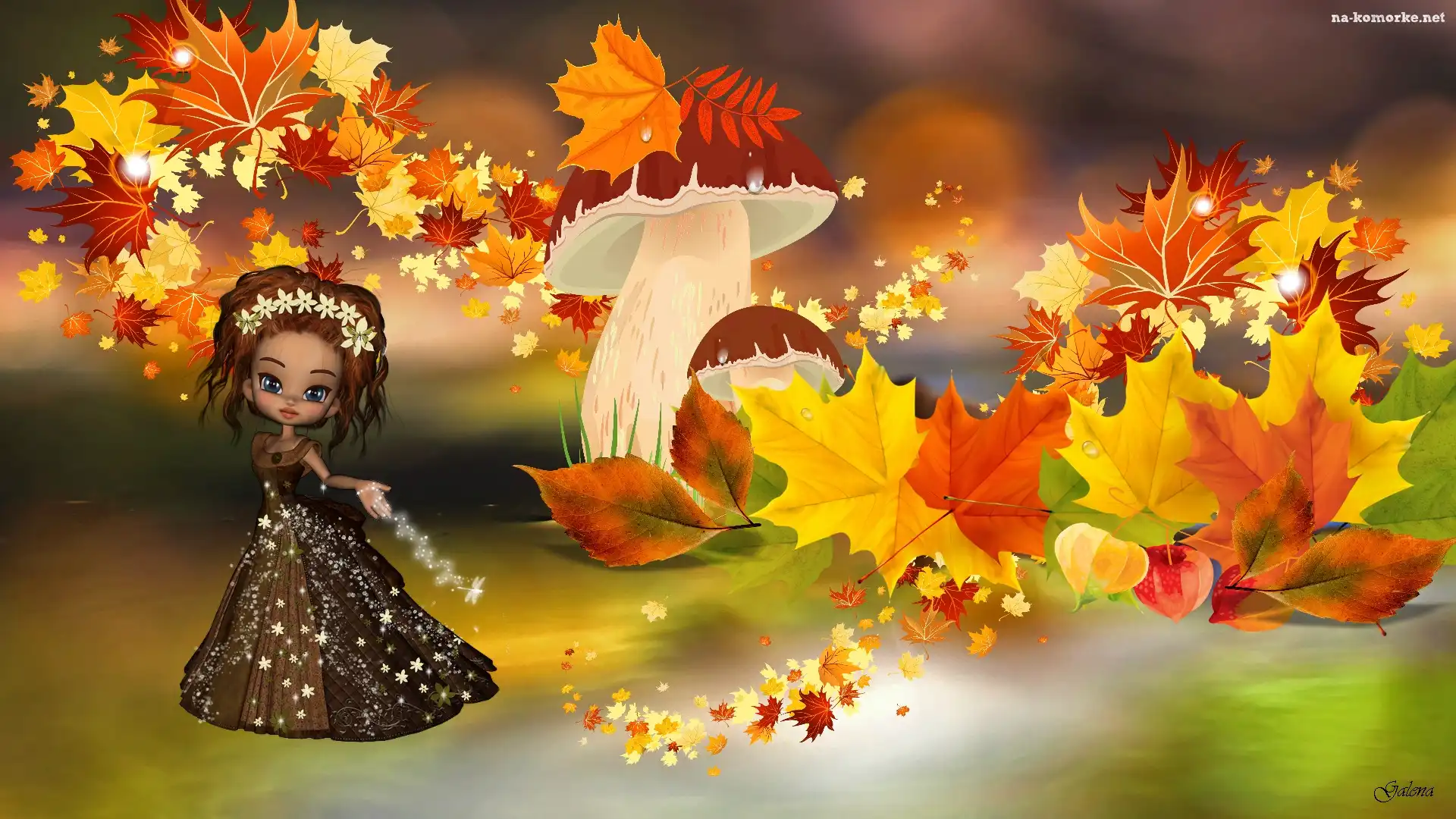 Jesień, Liście, Laleczka, Grafika, Grzyb, Magia na Komórkę