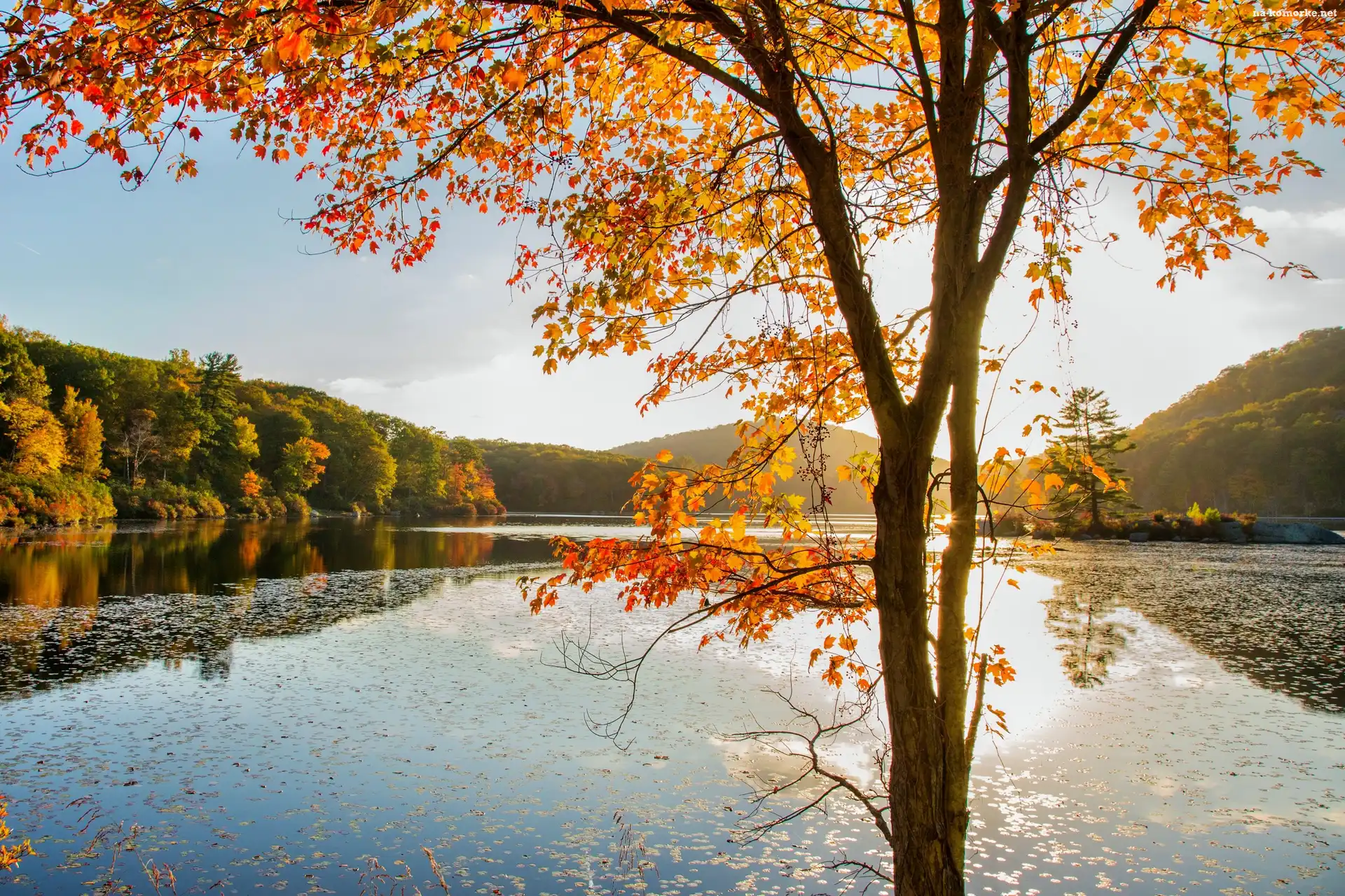 Jesień, Drzewo, Jezioro, Lasy na Komórkę