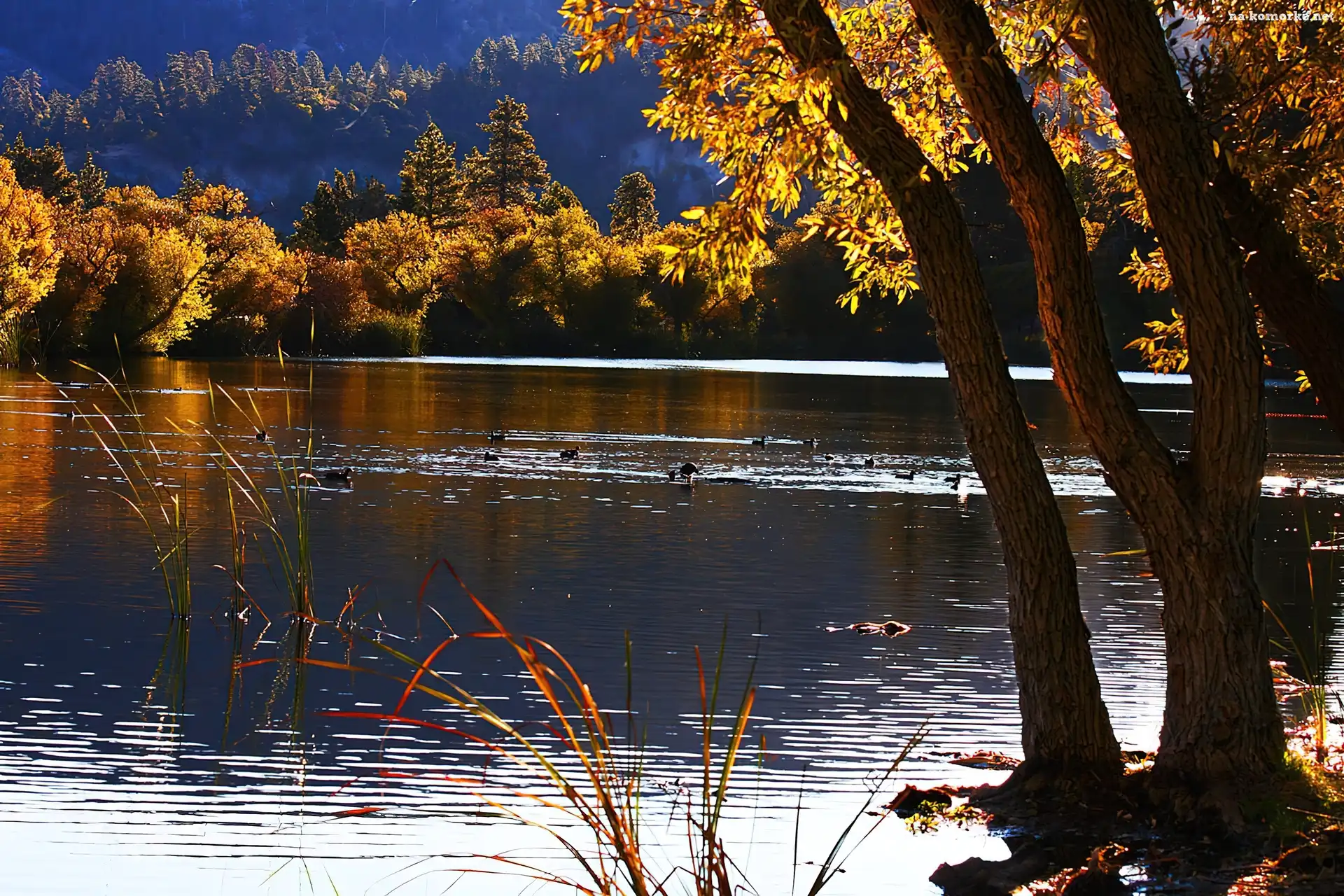 Jesień, Kalifornia, Jezioro, Drzewa na Komórkę