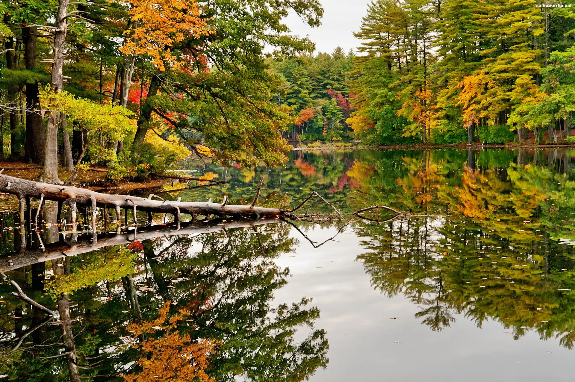 Jesień, Odbicie, Jezioro, Las na Komórkę