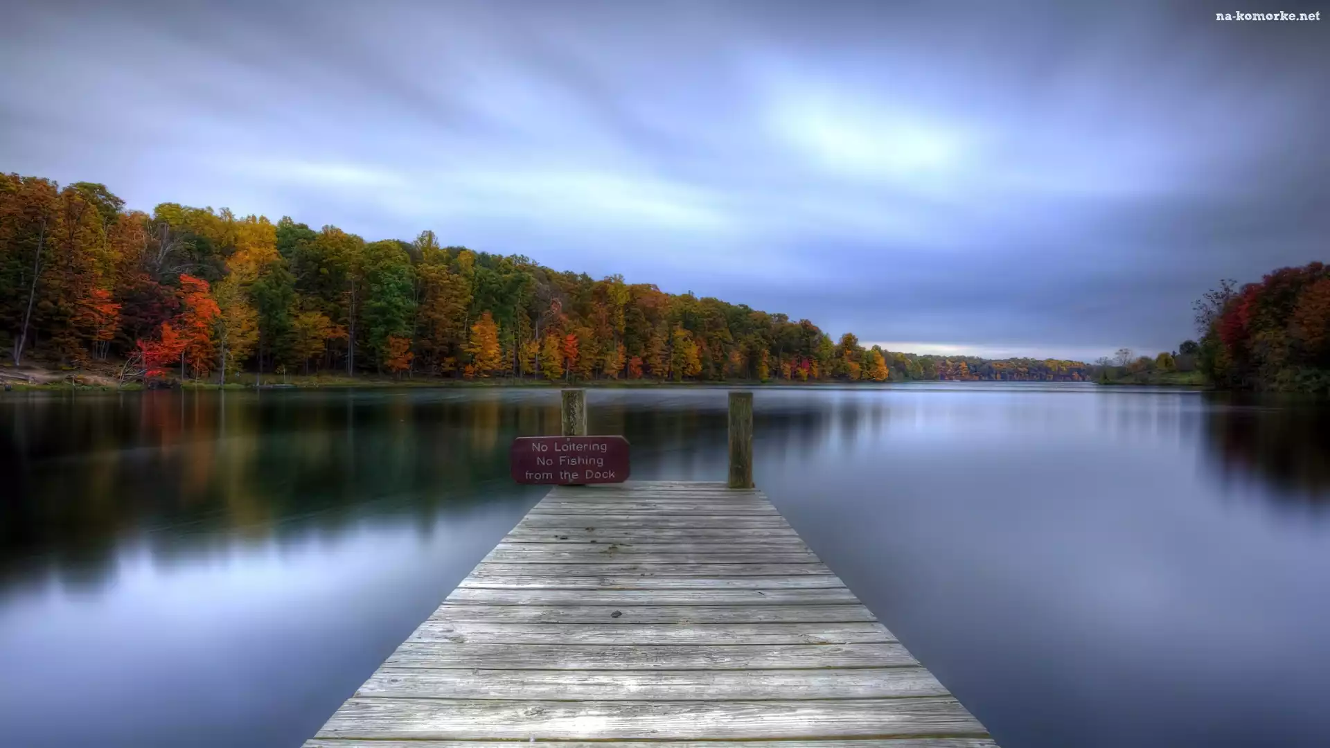 Jesień, Pomost, Jezioro, Lasy na Komórkę