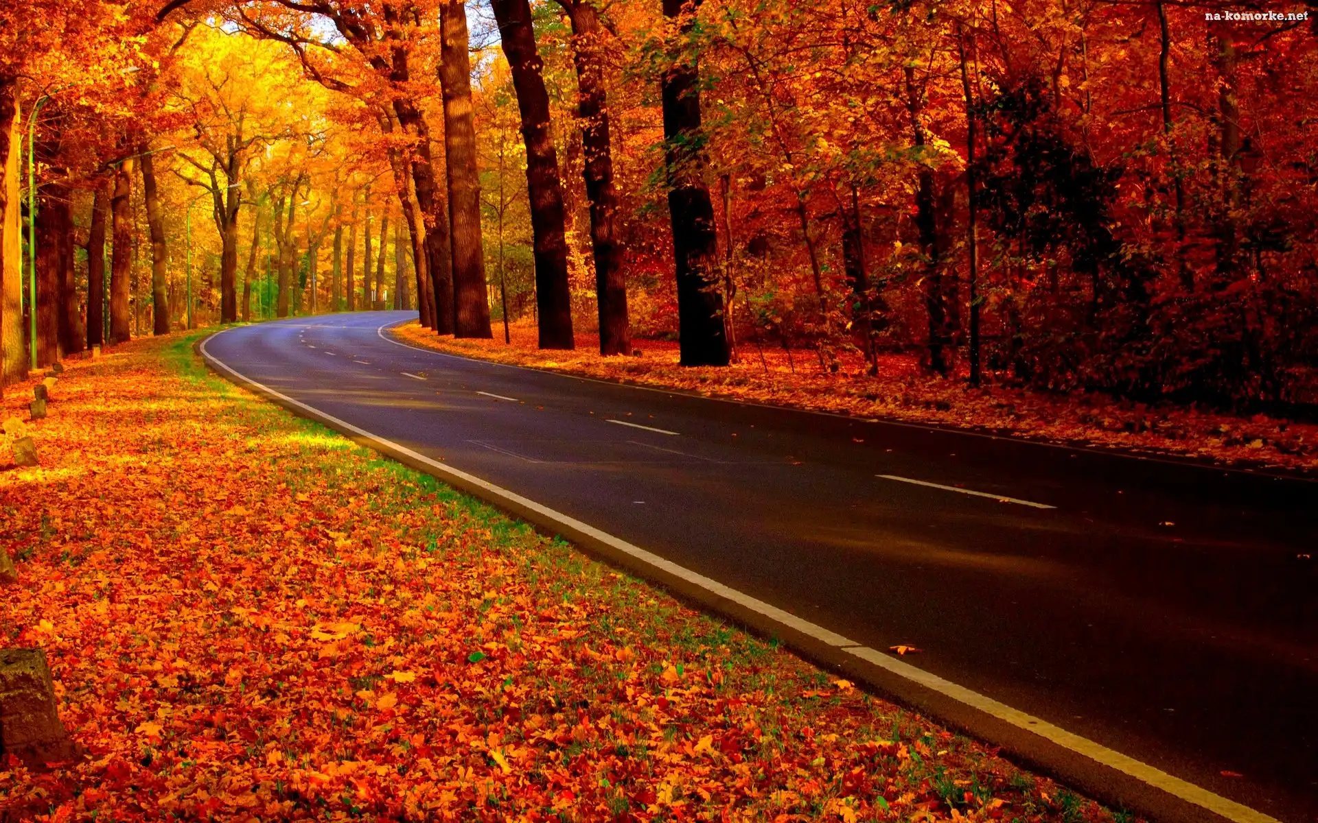 Jesień, Droga, Las, Kolorowe, Liście na Komórkę
