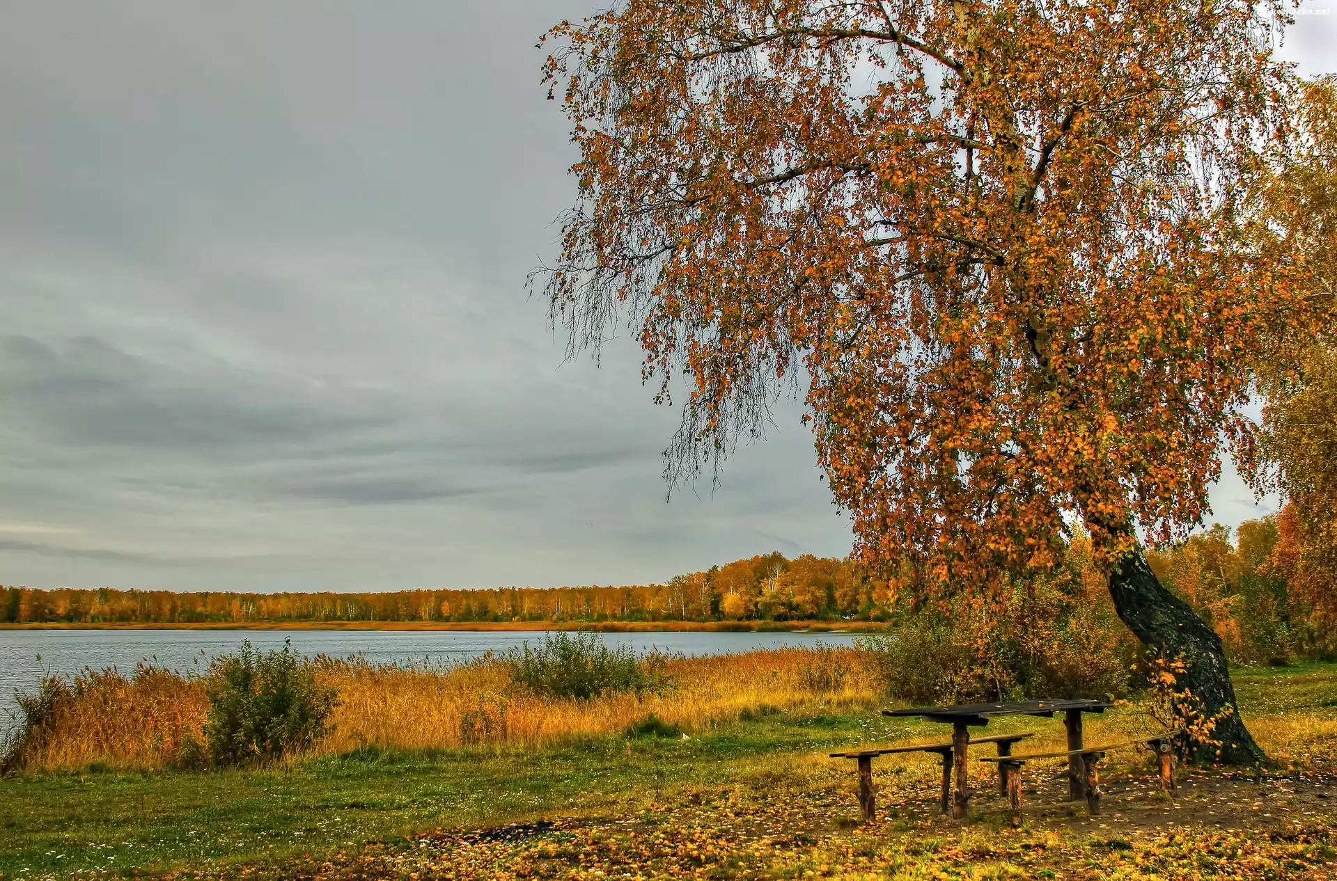 Jesień, Ławeczki, Las, Jezioro na Komórkę