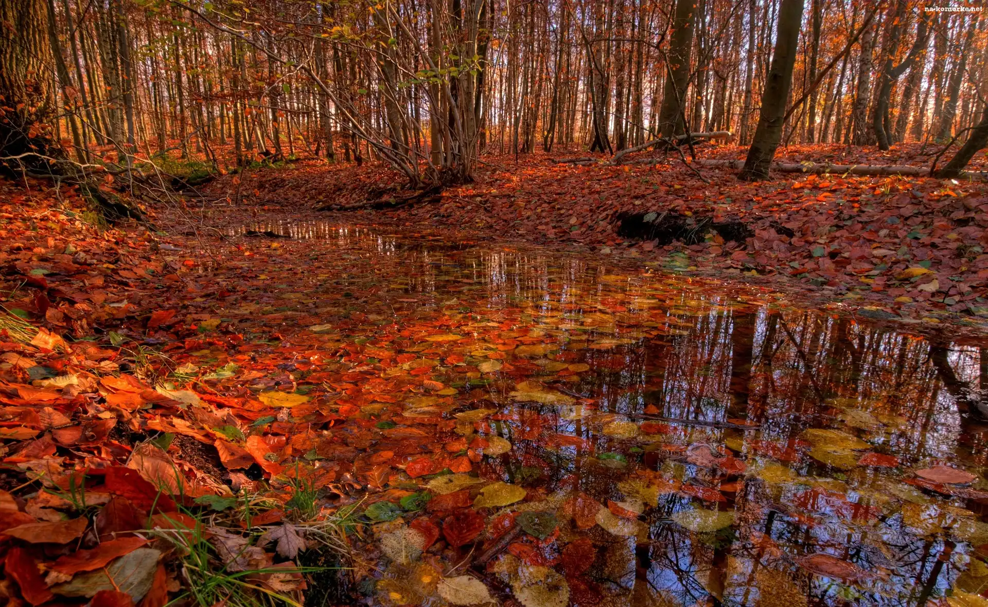Jesień, Kałuża, Las, Liście na Komórkę