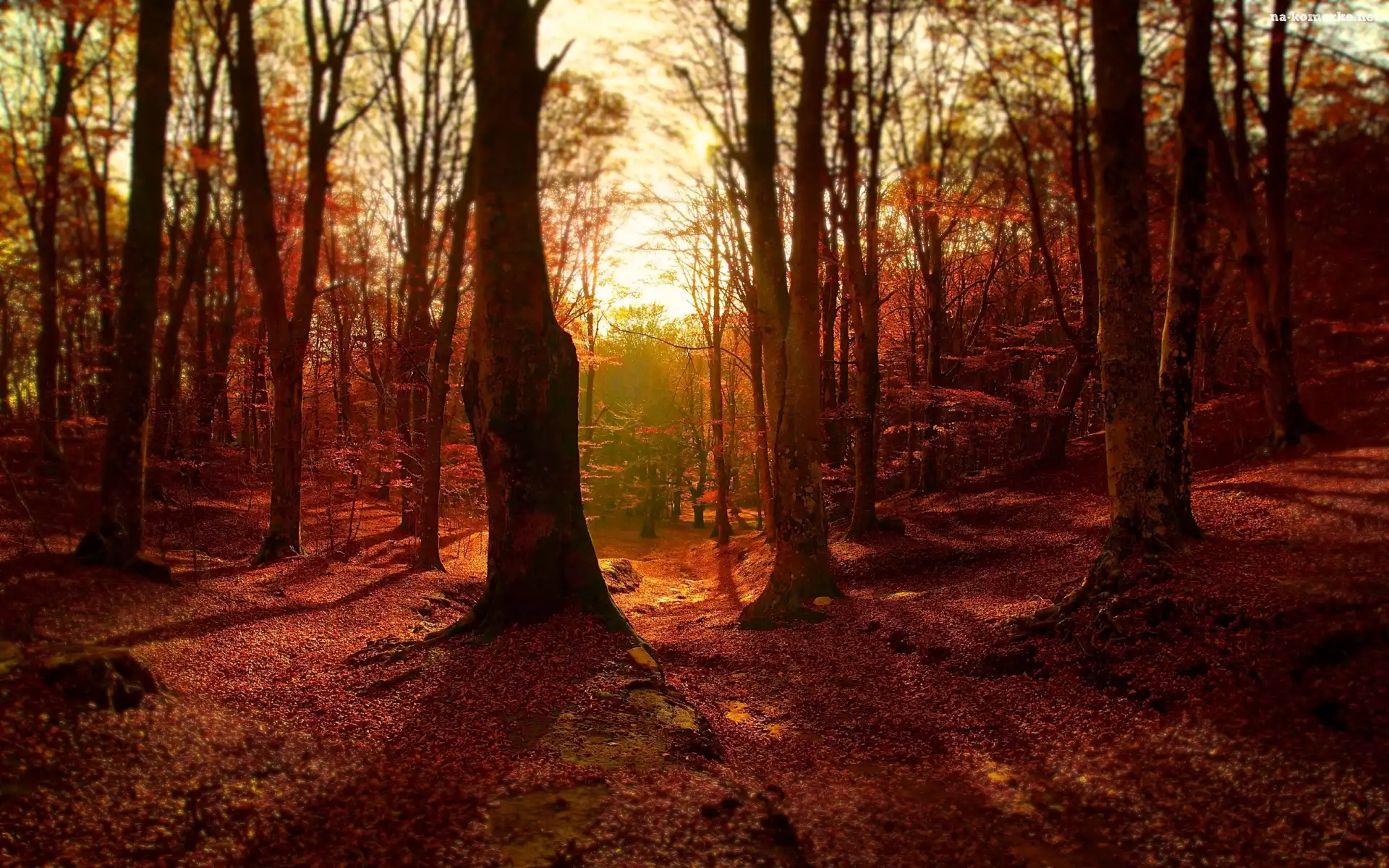 Jesień, Liście, Las, Drzewa na Komórkę