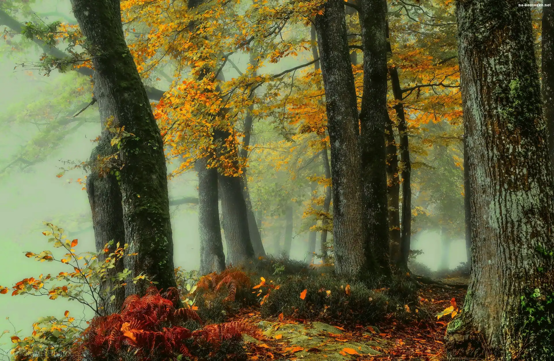 Jesień, Mgła, Las, Drzewa na Komórkę