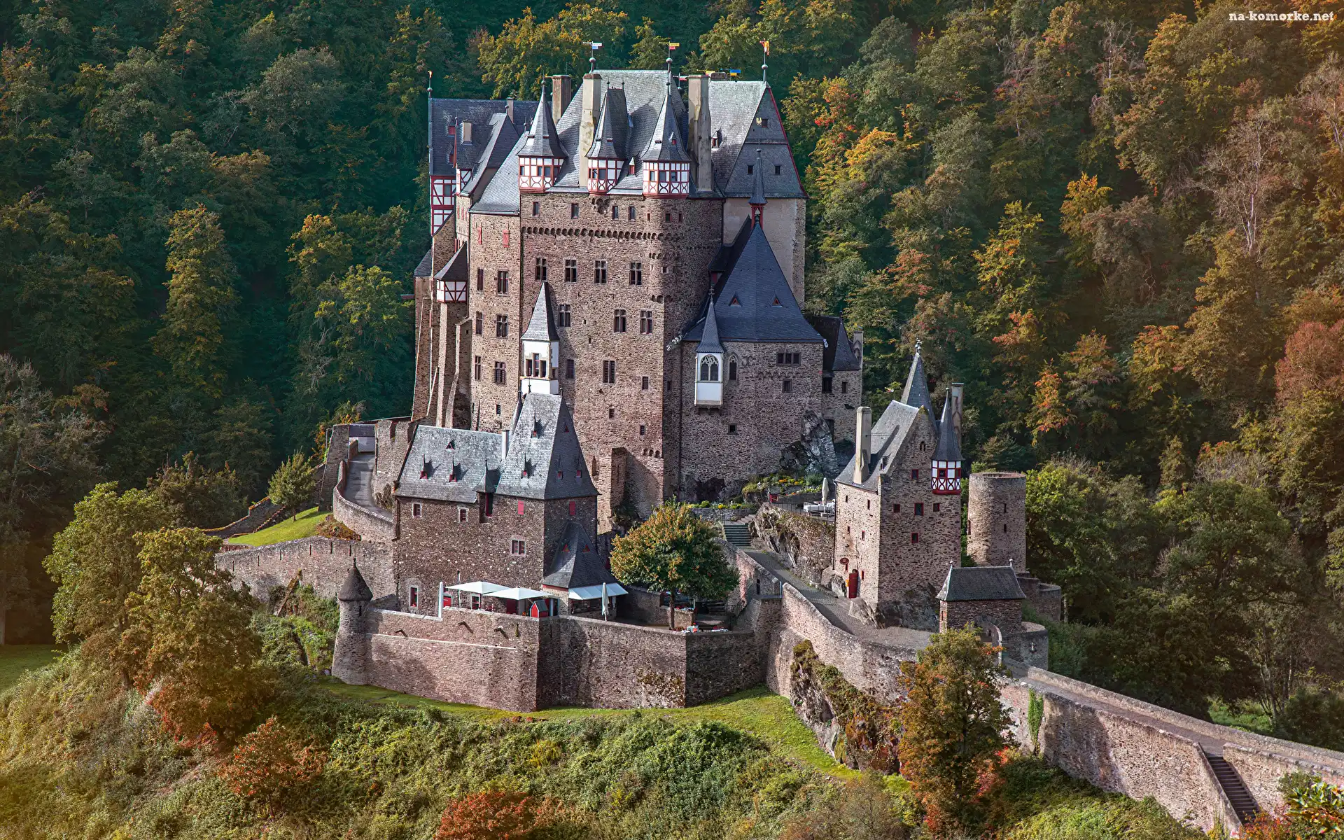 Drzewa, Niemcy, Las, Jesień, Wieża, Zamek Eltz na Komórkę