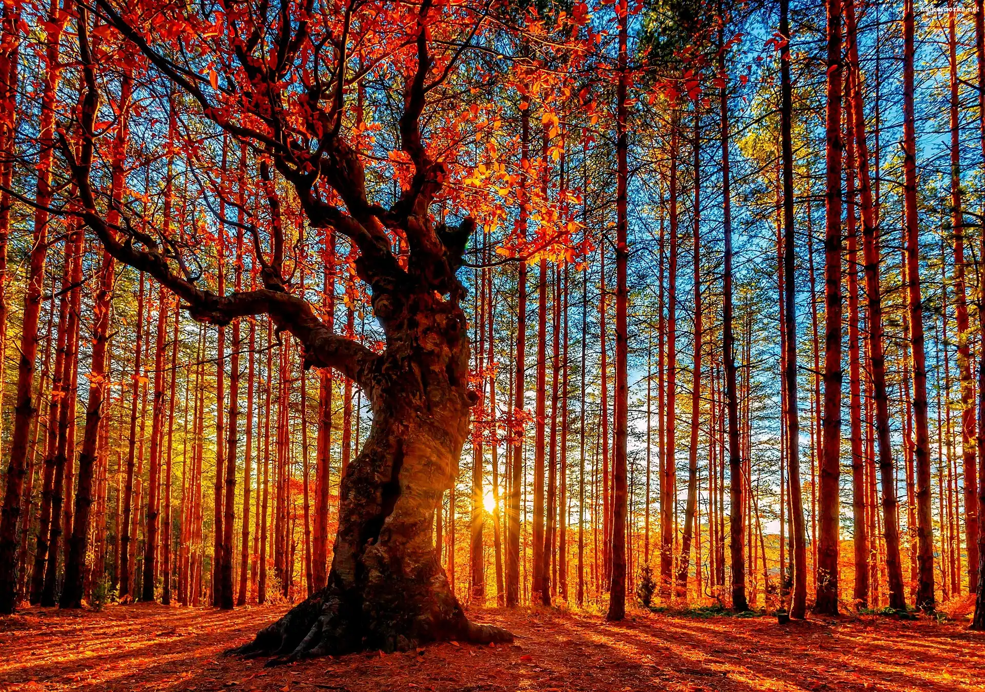 Jesień, Słońca, Las, Promienie na Komórkę