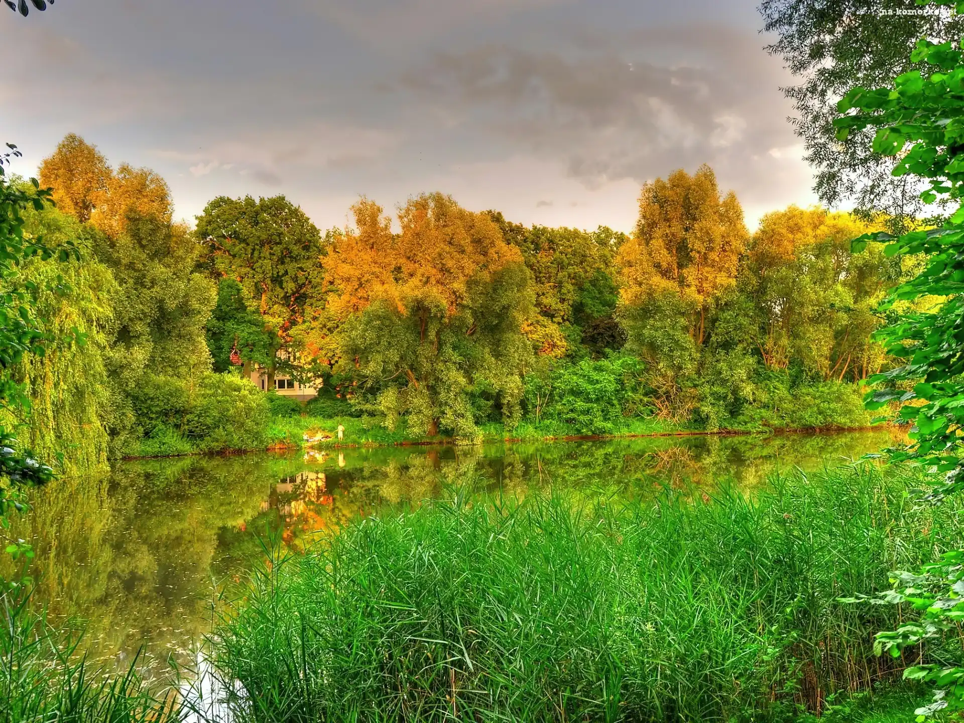 Jesień, Trawy, Las, Jezioro na Komórkę