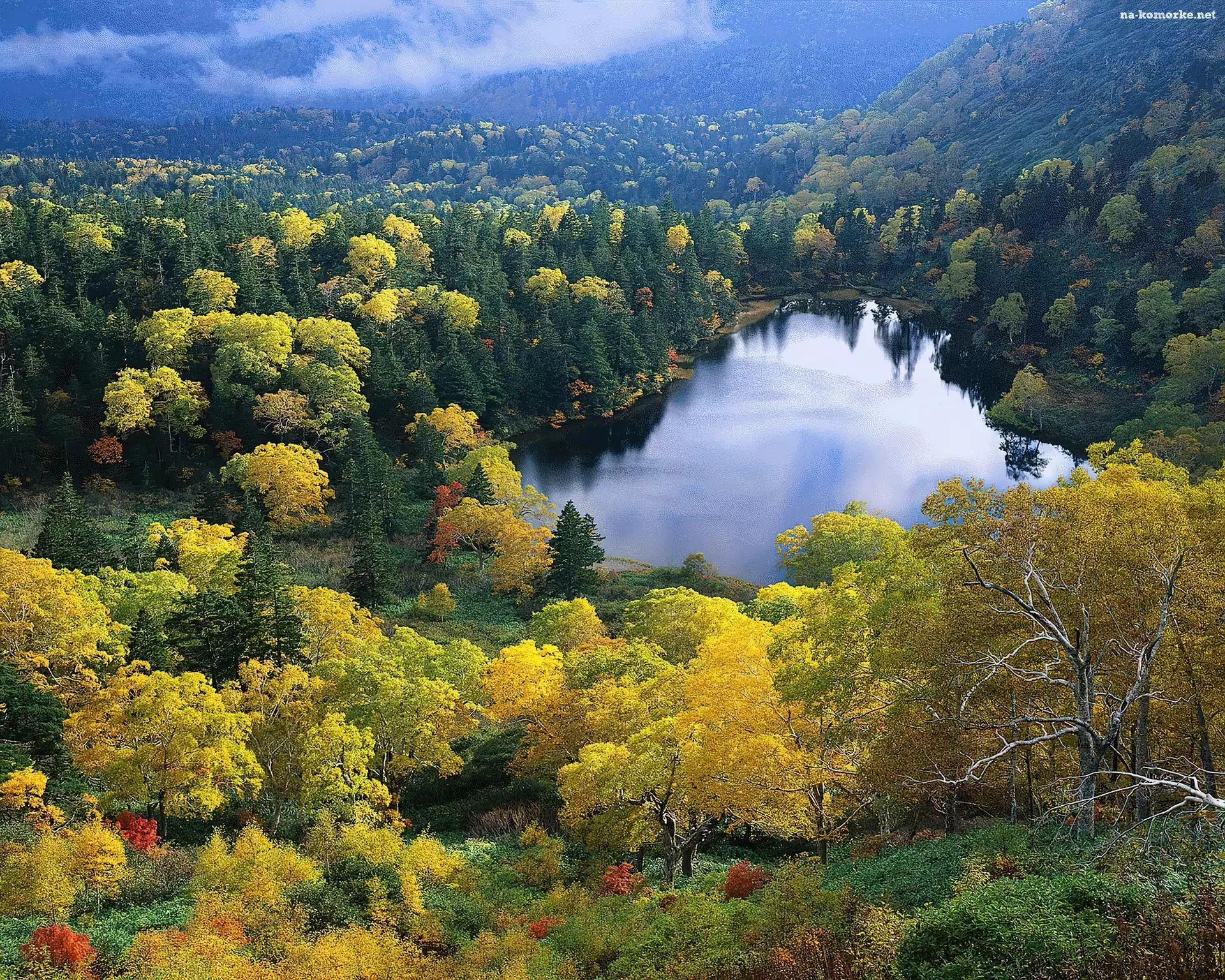 Jesień, Wisconsin, Lasy, Jezioro na Komórkę