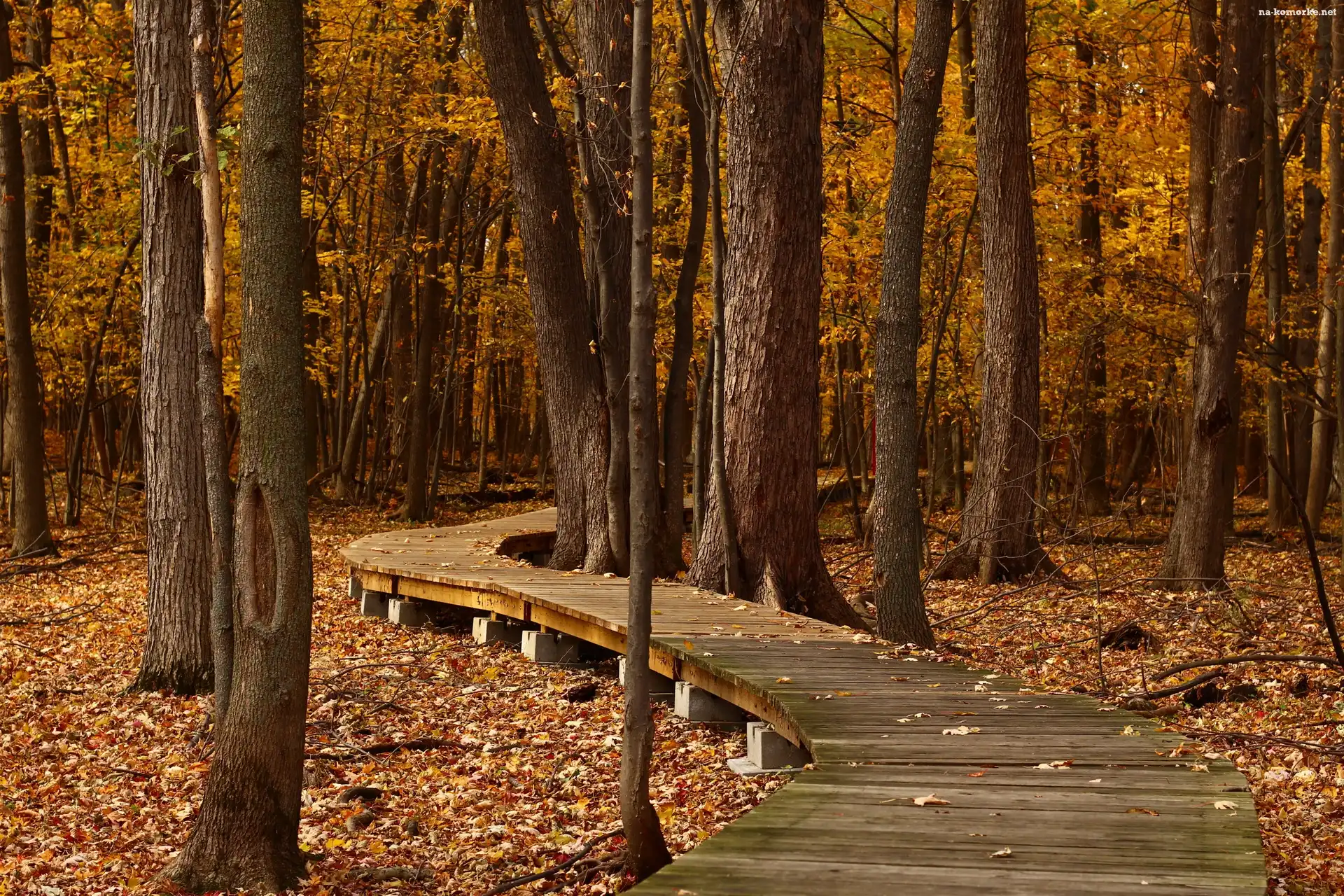 Jesień, Drzewa, Liście, Park na Komórkę