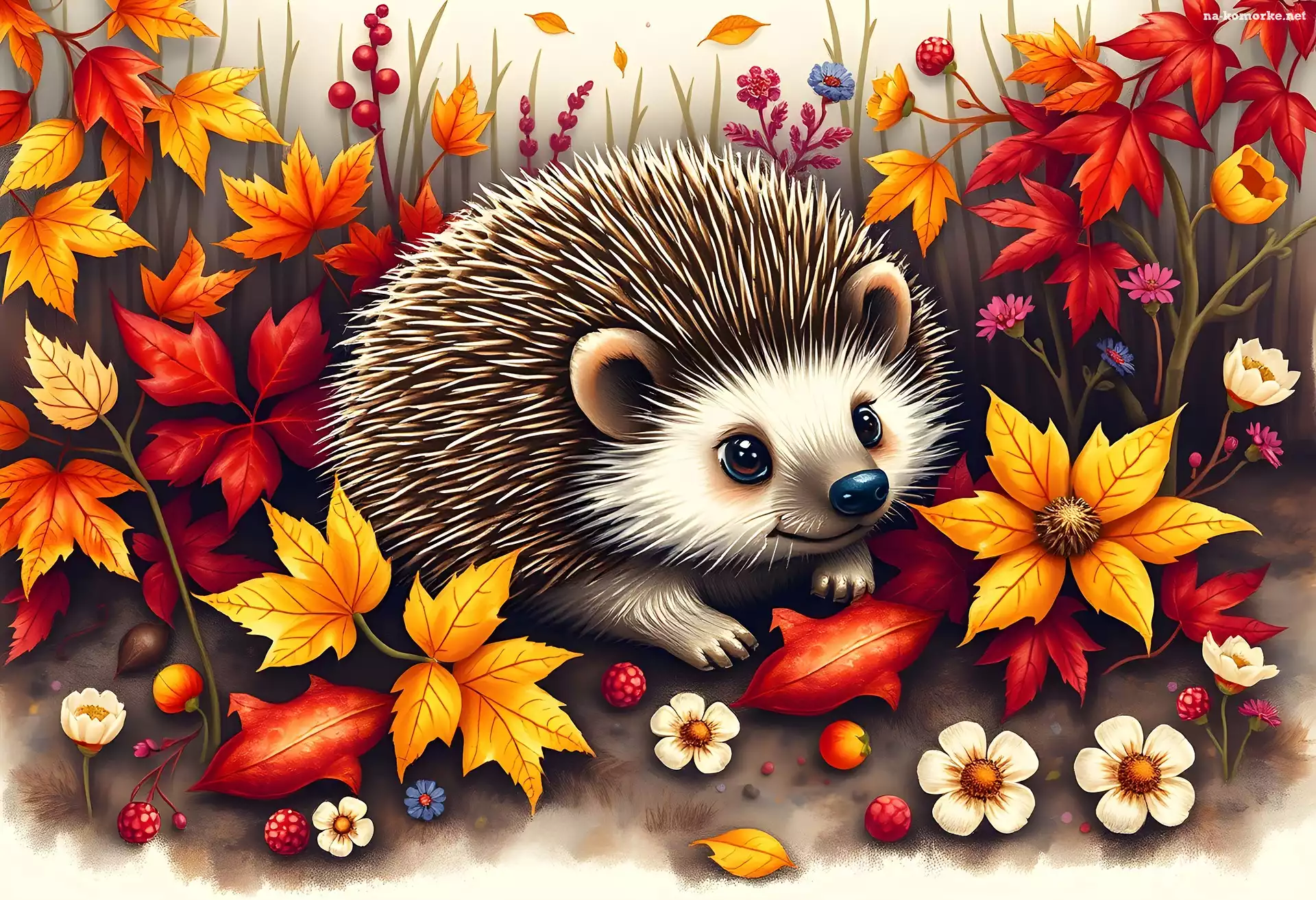 Liście, Grafika, Jeż, Jesień na Komórkę