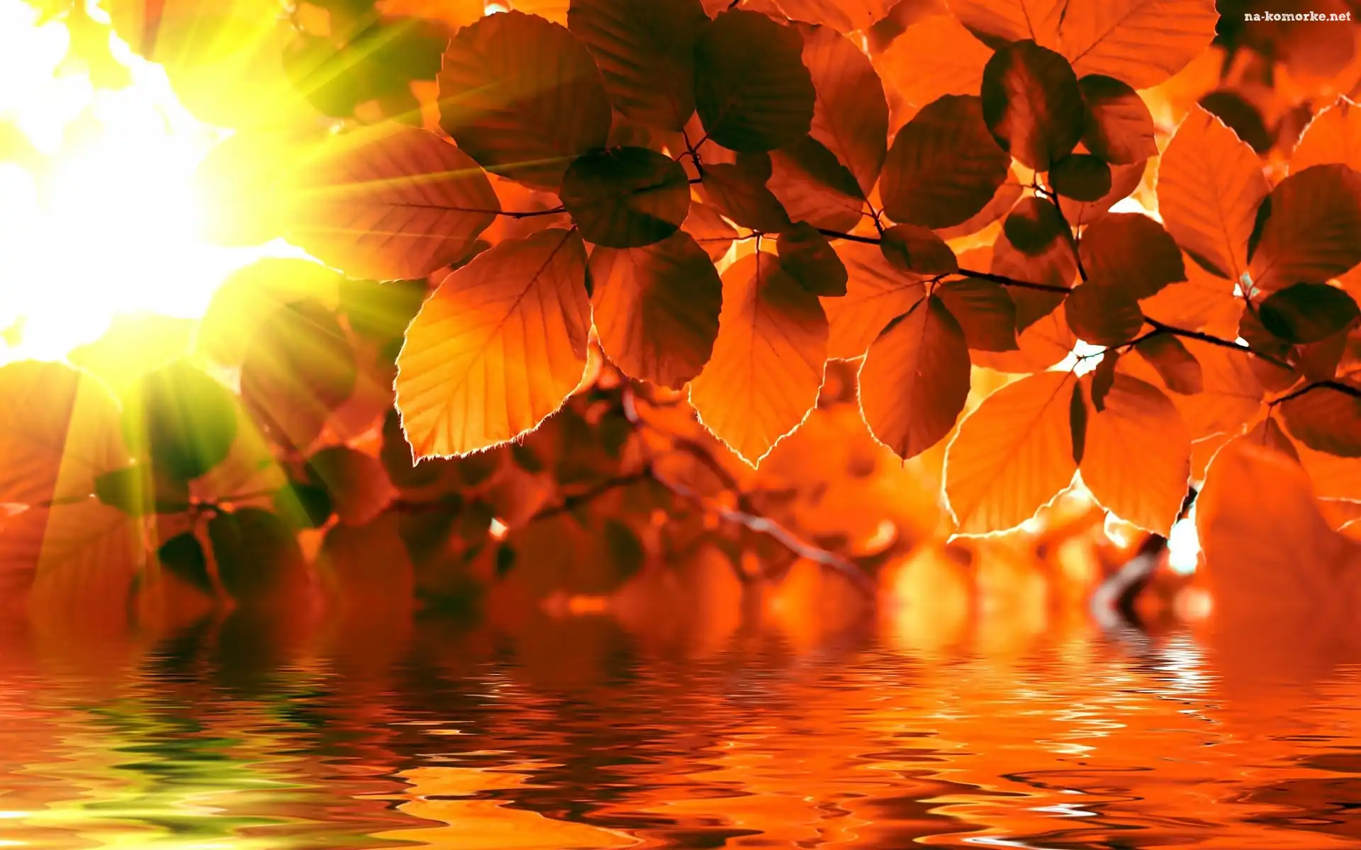 Jesień, Promienie słońca, Liście, Woda na Komórkę