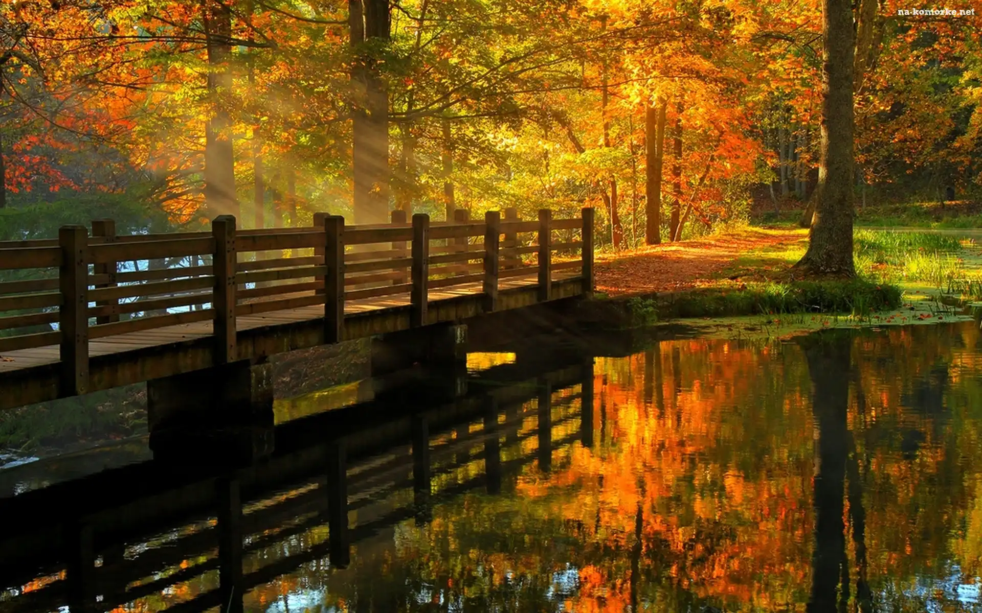 Jesień, Park, Rzeka, Most, Światło na Komórkę