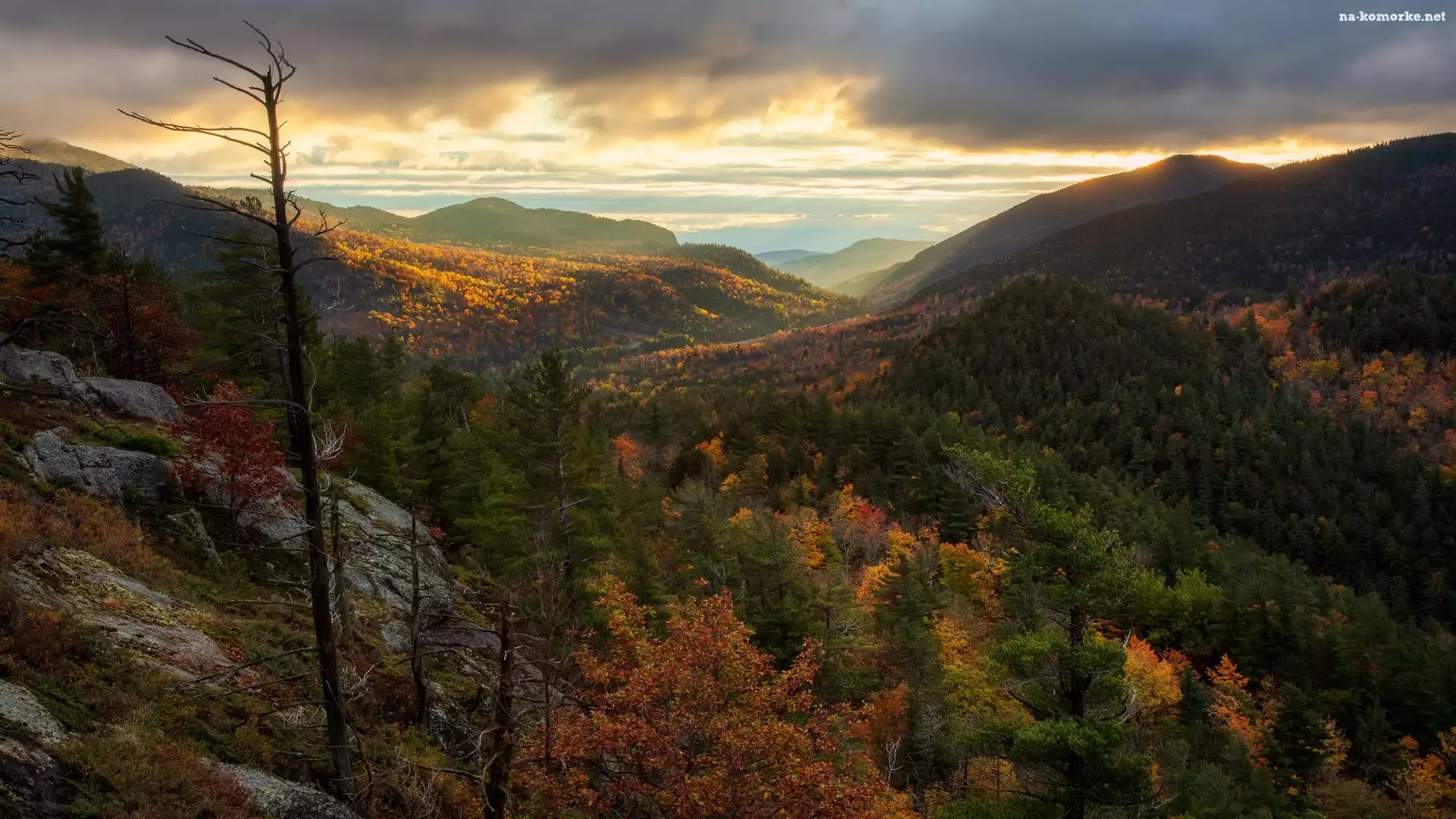 Adirondack, Stan Nowy Jork, Kolorowe, Góry, Drzewa, Stany Zjednoczone, Jesień, Pasmo górskie na Komórkę |