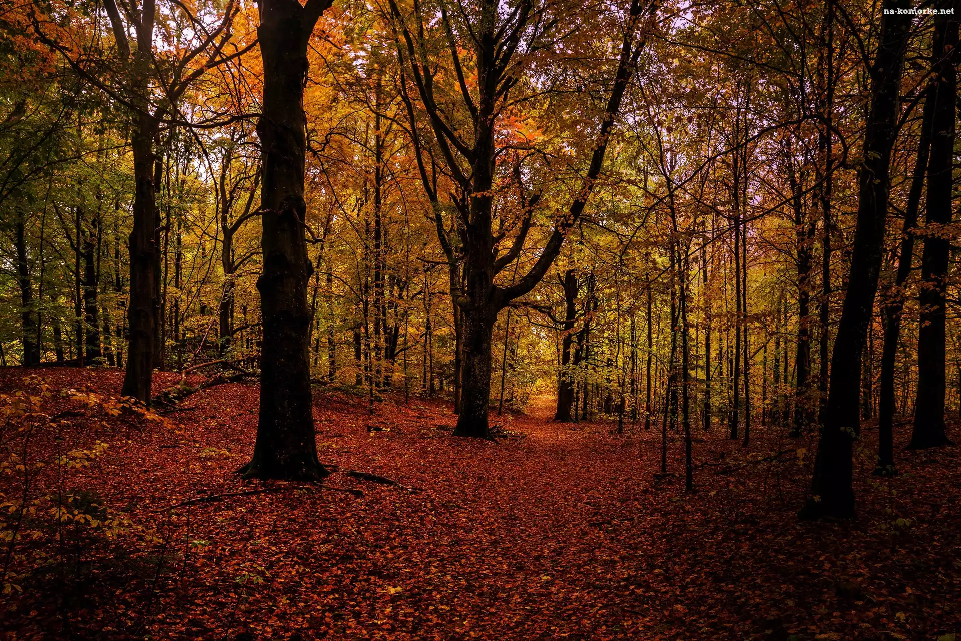 Jesień, Las, Drzewa, Opadłe, Liście na Komórkę