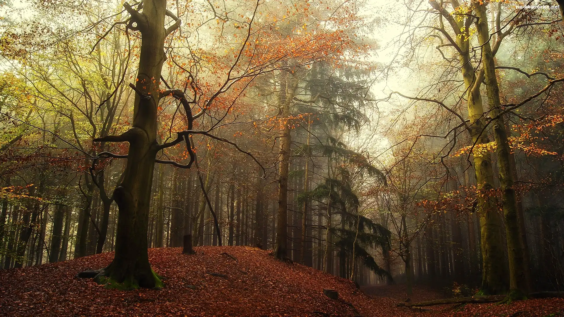 Jesień, Las, Pagórek, Drzewa na Komórkę