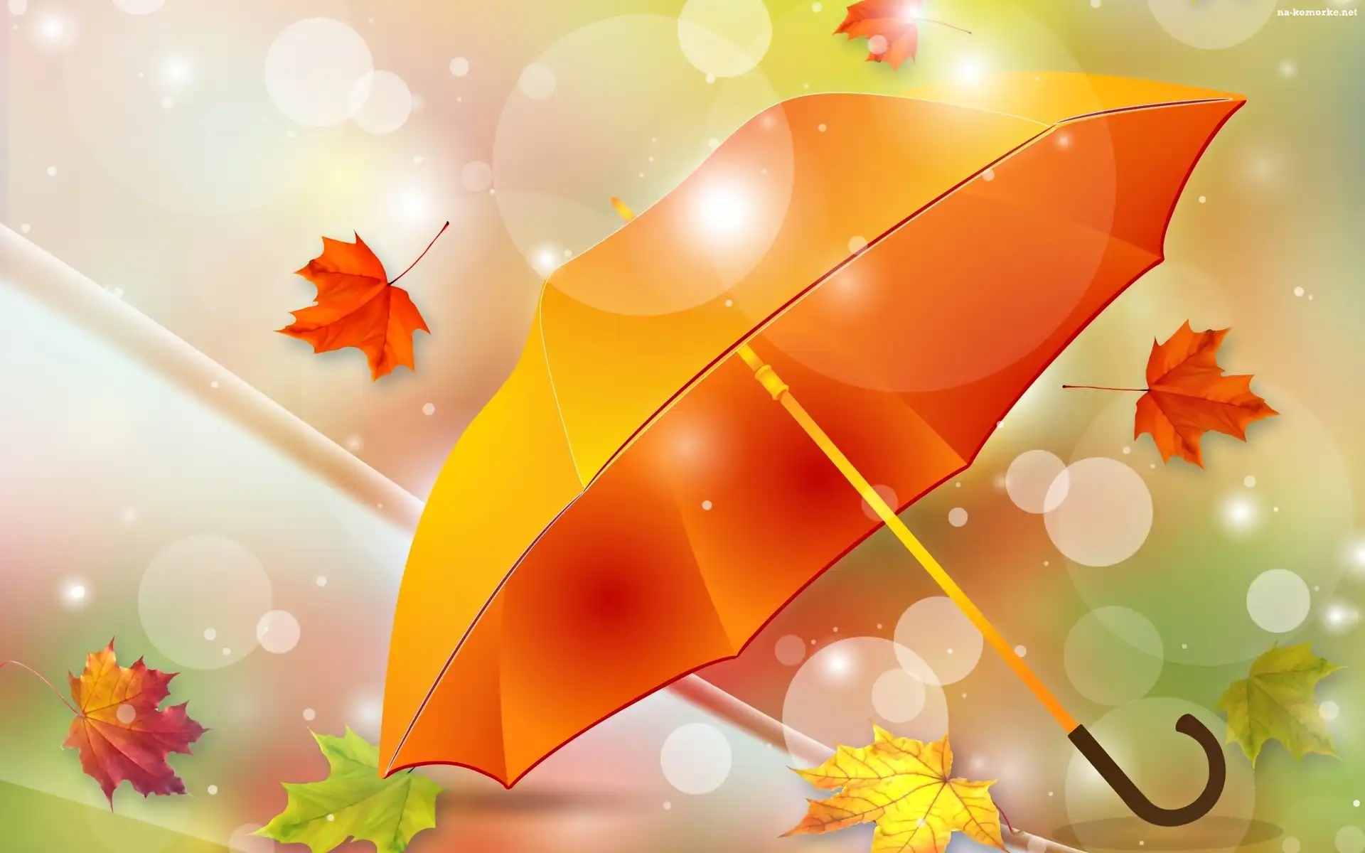 Jesień, Grafika 2D, Parasol, Liście na Komórkę