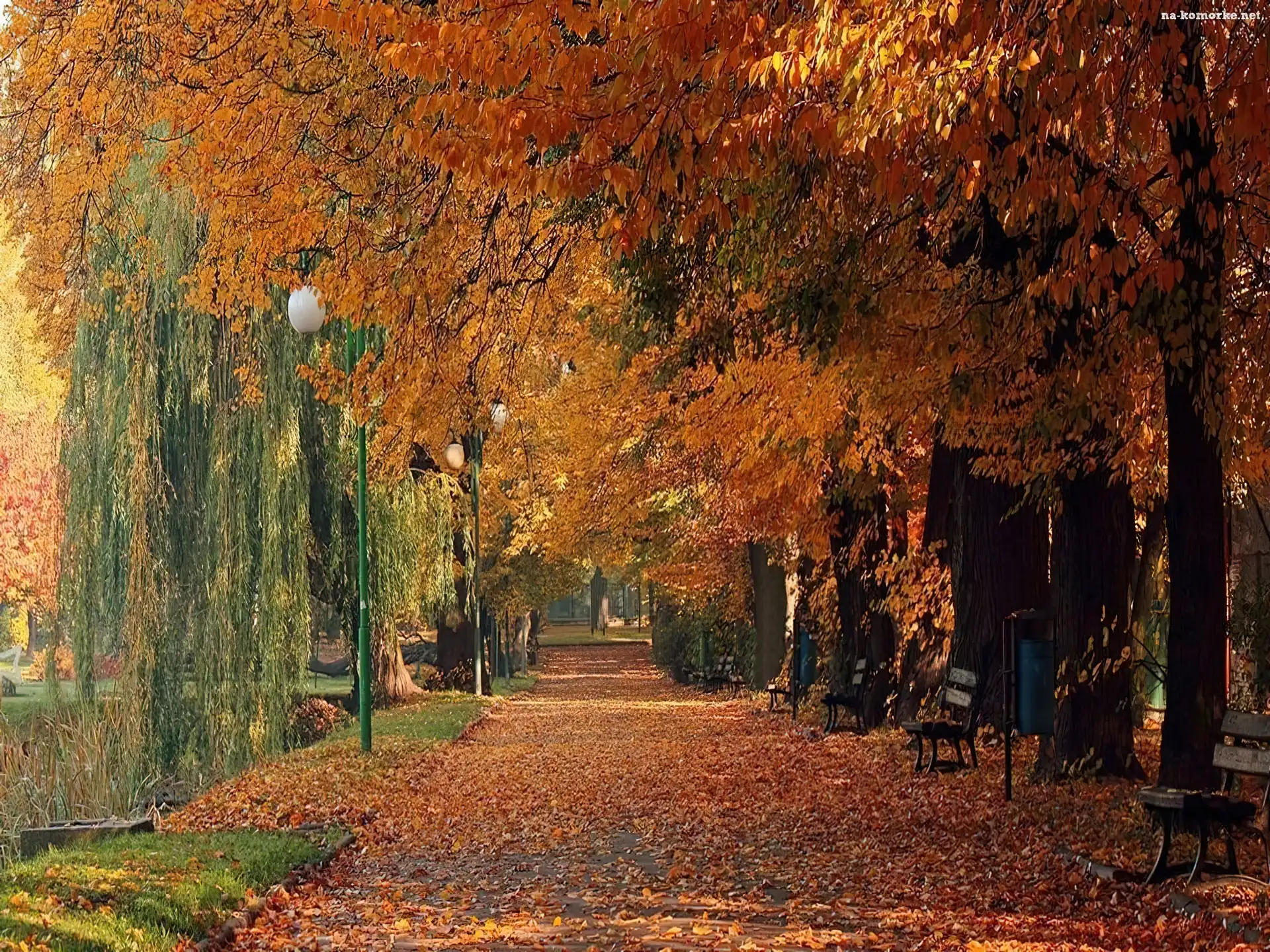 Jesień, Ławki, Park, Aleja na Komórkę