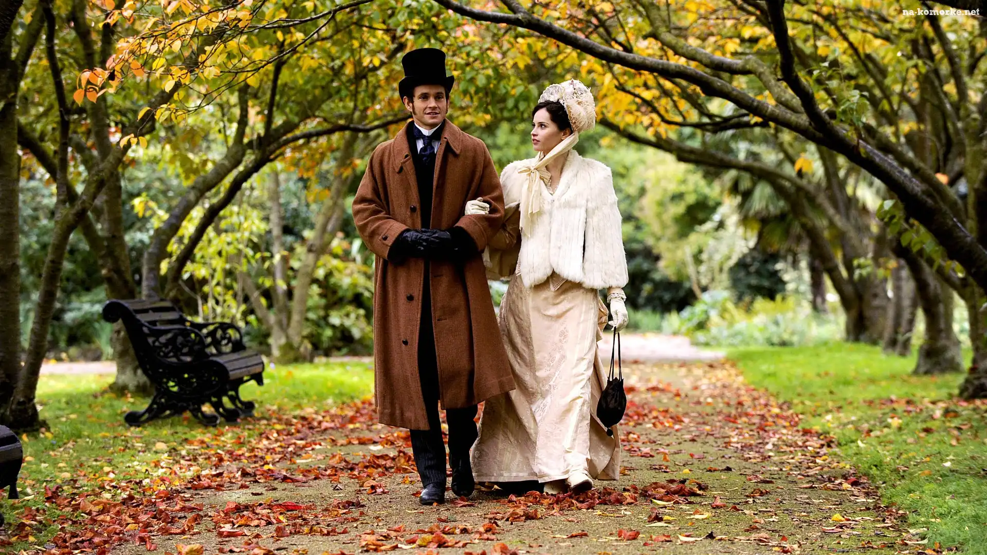 Jesień, Para, Retro, Park, Liście na Komórkę