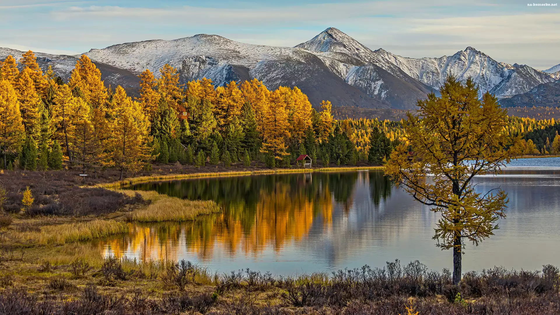 Góry, Jezioro, Odbicie, Jesień, Drzewa, Pożółkłe na Komórkę