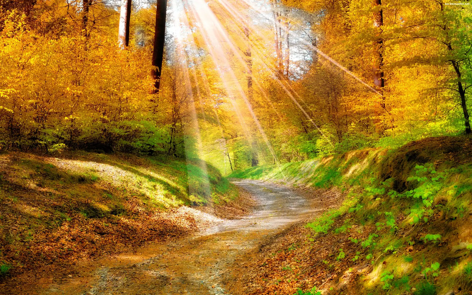 Jesień, Las, Droga, Promienie, Słońca na Komórkę